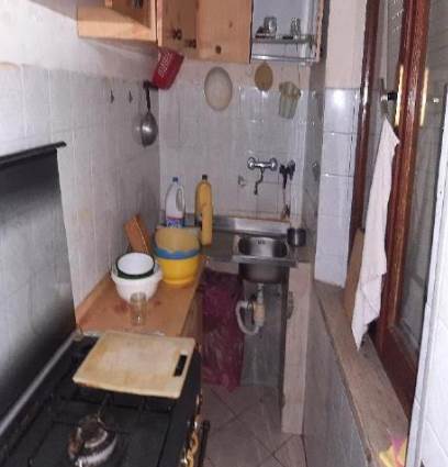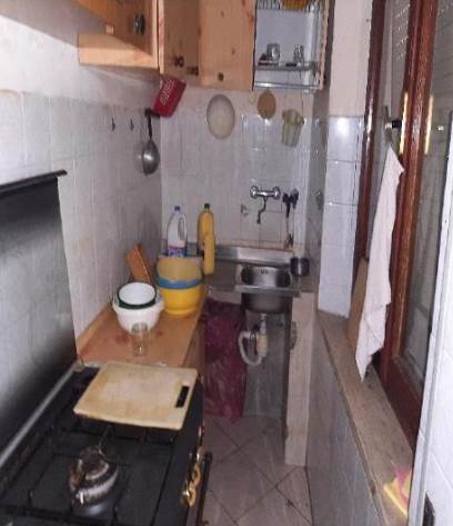 L’abitazione è composta da: ingresso, cucina abitabile con retrocucina, soggiorno, studio, antibagno e bagno, numero due camere, un ripostiglio per complessivi mq 113,00 di superficie lorda, e un balcone di mq 11,30. Stato di conservazione sufficiente; i pavimenti sono in piastrelle di ceramica, le pareti tinteggiate con la sola eccezione dell’antibagno, del bagno del retrocucina sino ad un’altezza di circa ml 1,60, gli infissi interni sono in legno tamburato, gli infissi esterni sono in legno con vetro semplice e doppia finestra in alluminio solo sulle porte finestre che danno sul balcone e avvolgibili in pvc, il portoncino è in legno. Gli impianti, elettrico, idrico e termico se pur presenti hanno bisogno di un controllo e della relativa messa a norma.