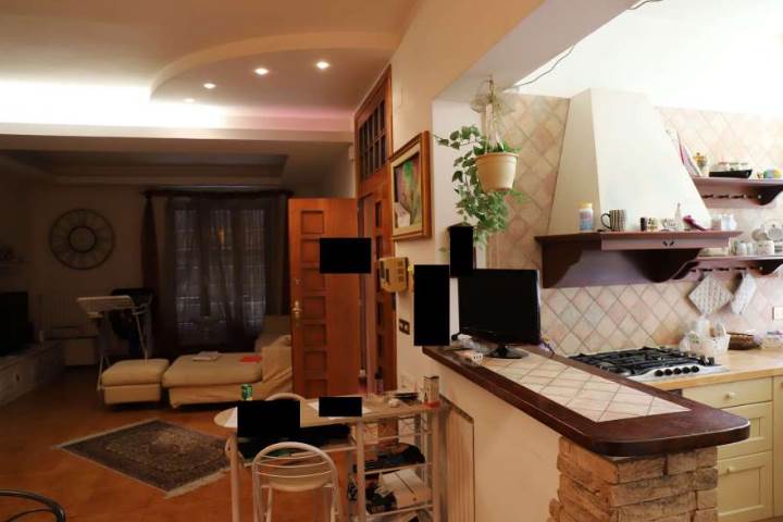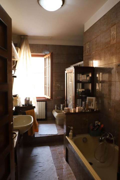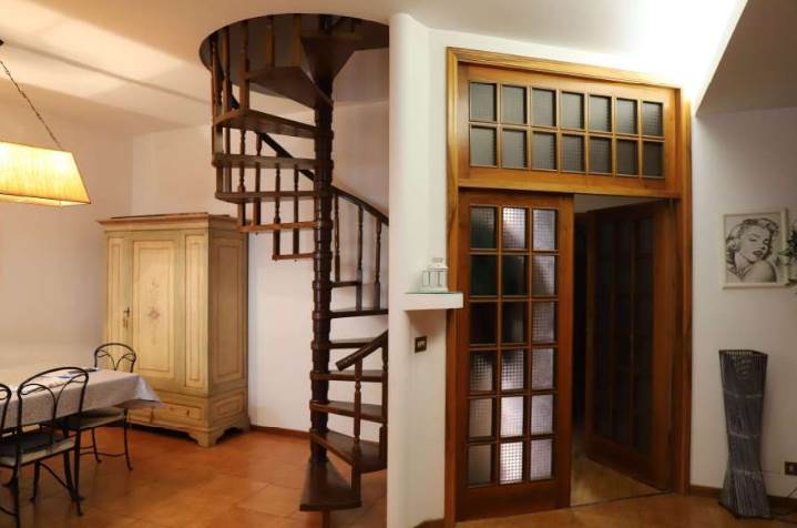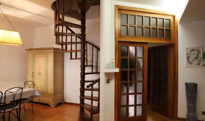 Gli infissi sono in legno con doppi vetri, dotati esternamente di persiane in legno, ad eccezione della vetrata della cucina al piano secondo che è realizzata in alluminio anodizzato con vetri martellati. L’appartamento è dotato di impianto di riscaldamento autonomo con caldaia a gas metano e radiatori in ghisa.