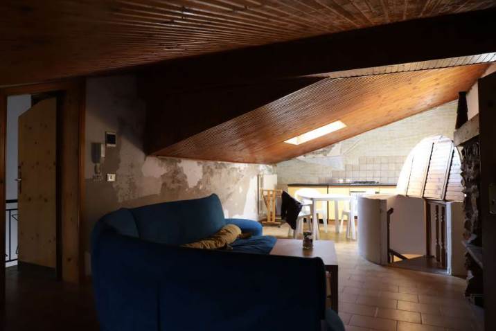 Le finiture del piano sottotetto comprendono pavimentazione in monocottura nel locale principale, parquet nelle soffitte, rivestimenti in ceramica nel bagno e soffitti rivestiti in perlinato di legno naturale; anche le porte interne sono in legno. Le pareti presentano segni di deterioramento e l’intera mansarda necessita di interventi manutentivi.
