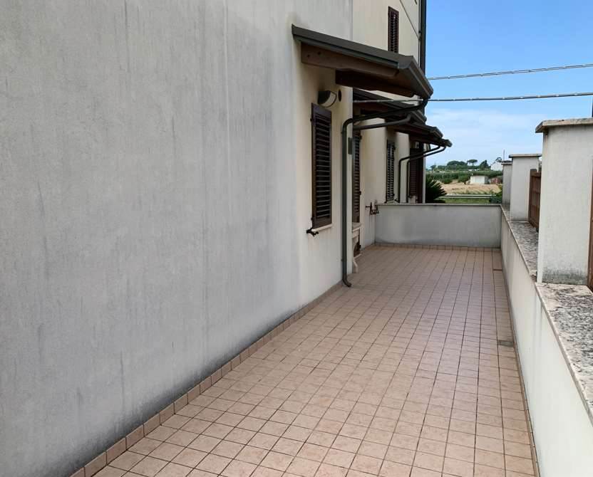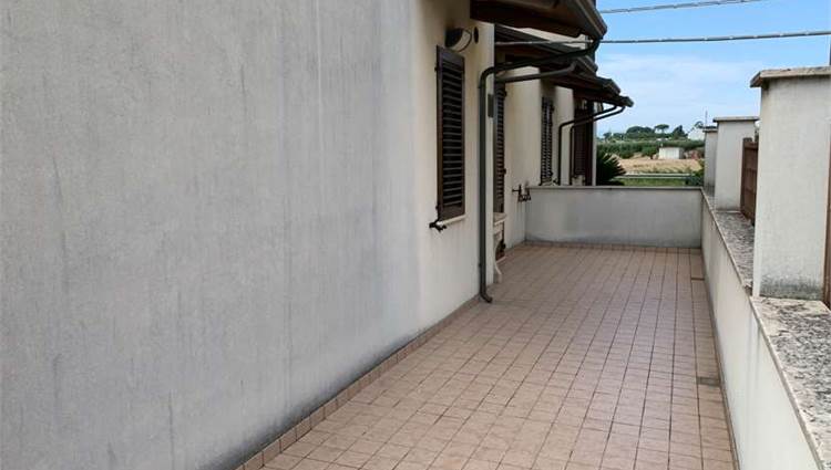 L’unità immobiliare presenta superfici particolarmente ampie: al piano terra si sviluppano circa 113 mq netti, mentre al piano seminterrato sono presenti ulteriori 66 mq netti, oltre a un balcone di circa 42 mq posto al piano terra. La distribuzione interna del piano terra comprende una cucina-soggiorno, un ingresso, un corridoio di disimpegno della zona notte, quattro camere, un ripostiglio e due bagni completi di lavabo, bidet, wc e doccia.