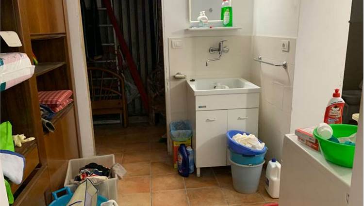 L’accesso al deposito posto al piano seminterrato avviene sia tramite il vano scala comune, sia mediante una rampa esterna ubicata nella corte comune. Tale unità, attualmente allo stato di costruzione, presenta lavori da completare per una superficie netta di circa 75 mq. La struttura portante risulta già realizzata e sono presenti pannellature laterali in legno. L’altezza interna dei locali del seminterrato è di circa 2,10 metri.