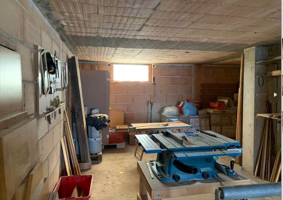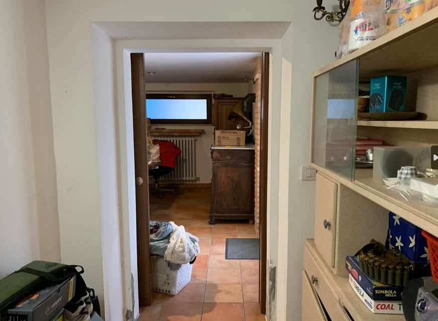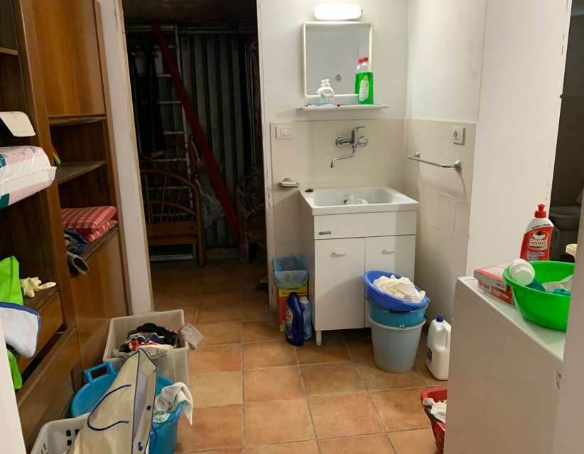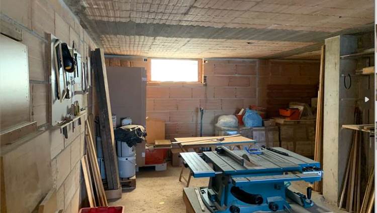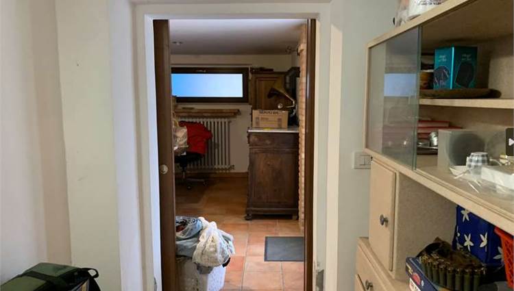 Al piano seminterrato la proprietà è costituita prevalentemente da locali adibiti a cantina e magazzino, oltre a un ulteriore bagno. Le finiture interne sono caratterizzate da pavimenti in ceramica, così come i rivestimenti dei bagni. Le porte interne del piano terra sono in legno, le finestre sono in legno con vetrocamera e le persiane sono in alluminio effetto legno.