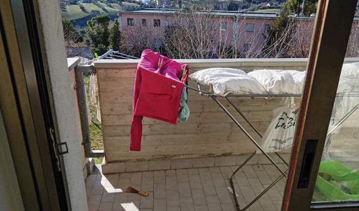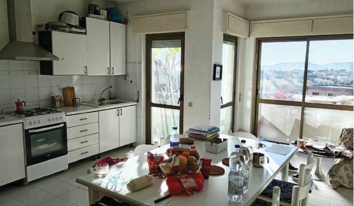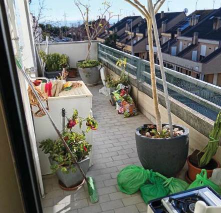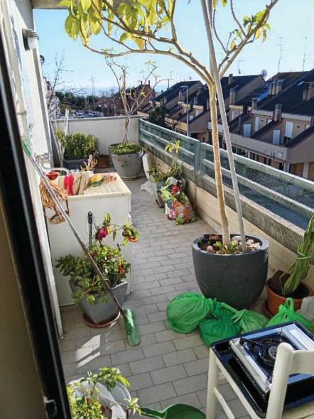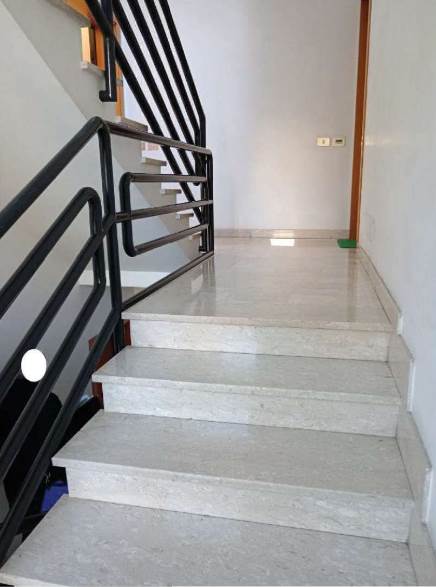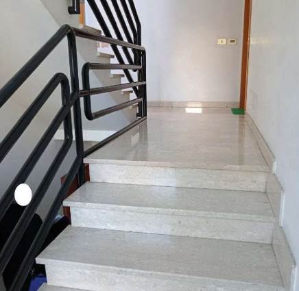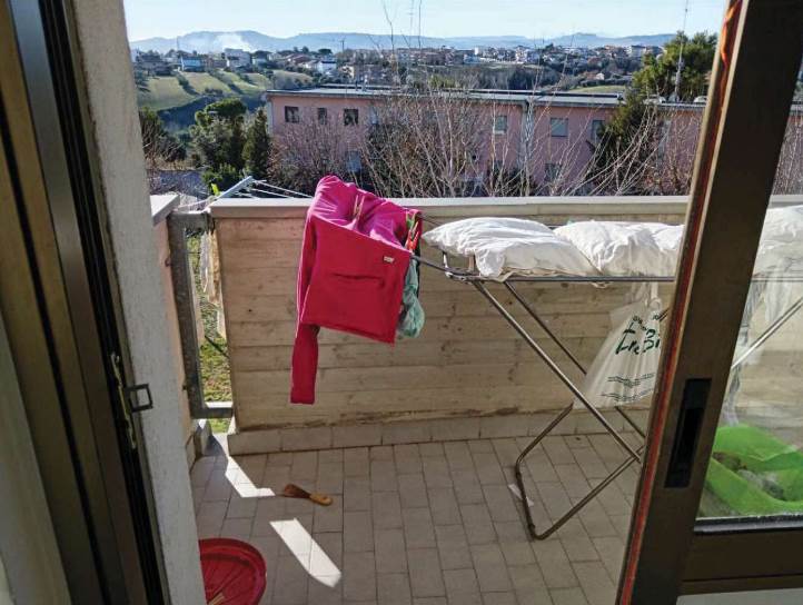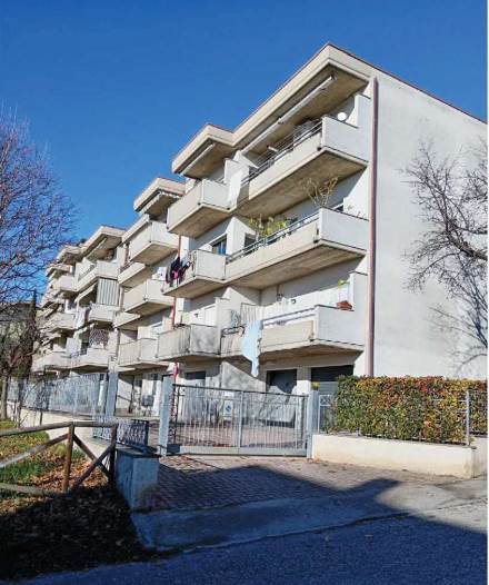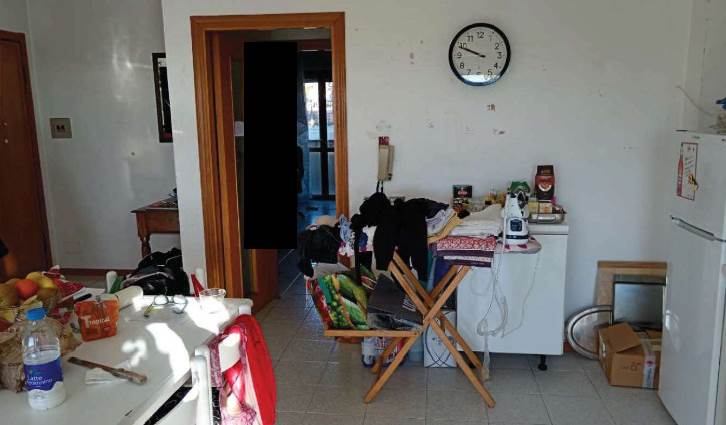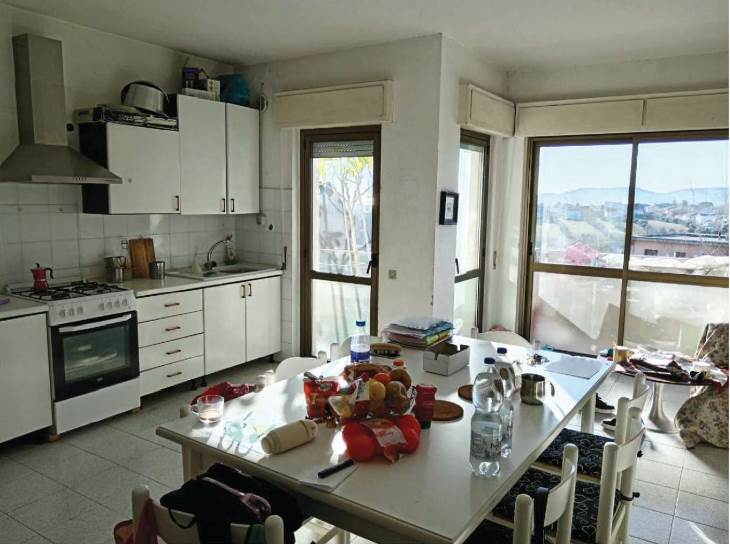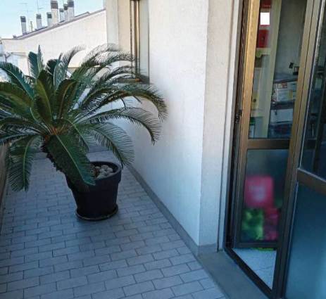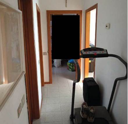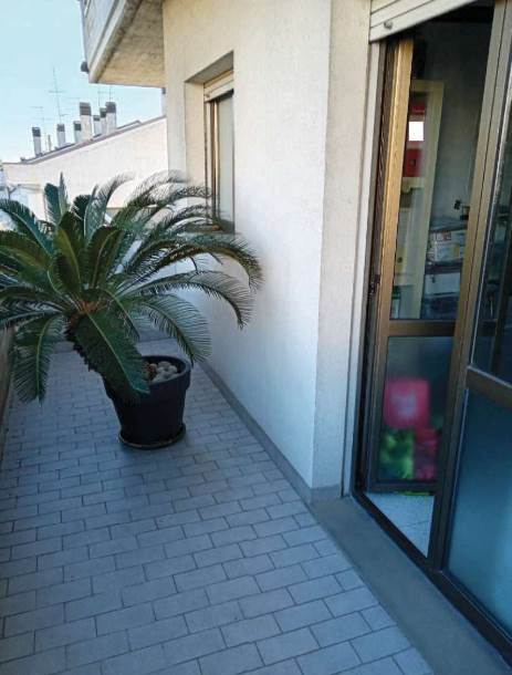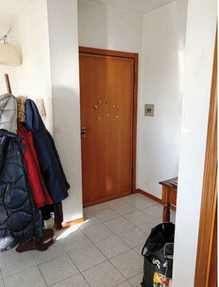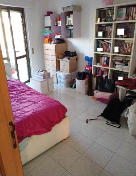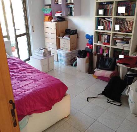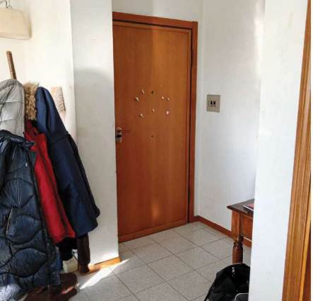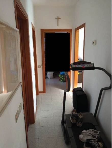 L’appartamento al piano primo è accessibile dalla scala condominiale tramite portoncino blindato e si compone di ingresso-soggiorno, corridoio di distribuzione, tre camere da letto, due bagni e quattro balconi. I servizi sono dotati rispettivamente di vasca e doccia, oltre ai sanitari completi.