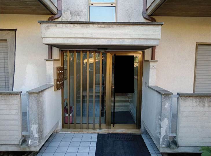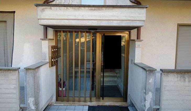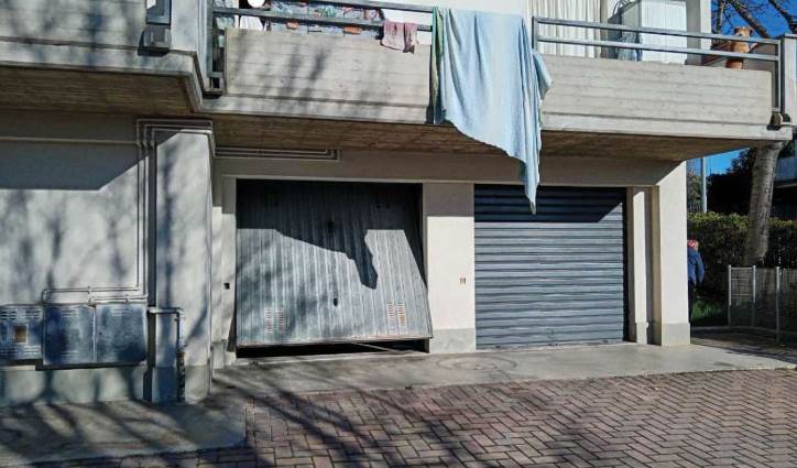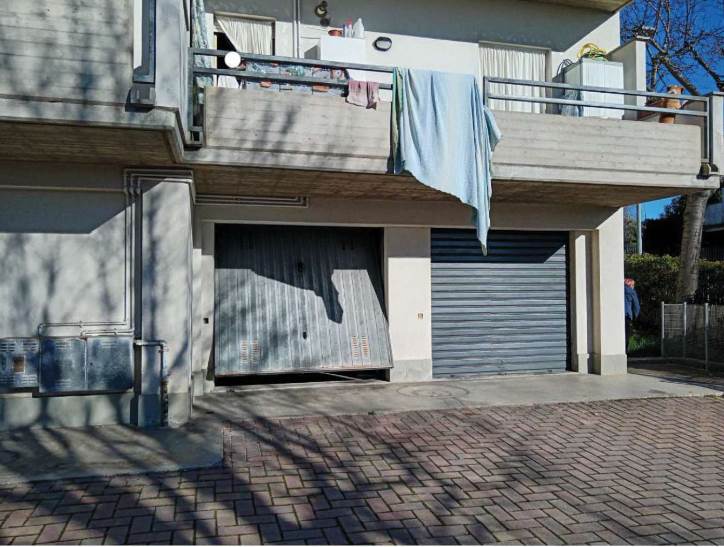 Il locale pertinenziale al piano seminterrato, adibito a cantina e garage, si presenta in buone condizioni. È accessibile sia dal corridoio condominiale tramite porta in legno, sia dalla corte esterna sul lato sud attraverso una serranda basculante in alluminio.