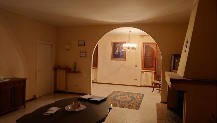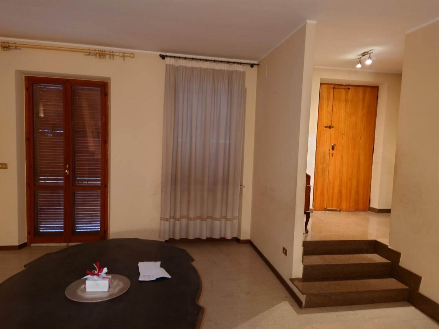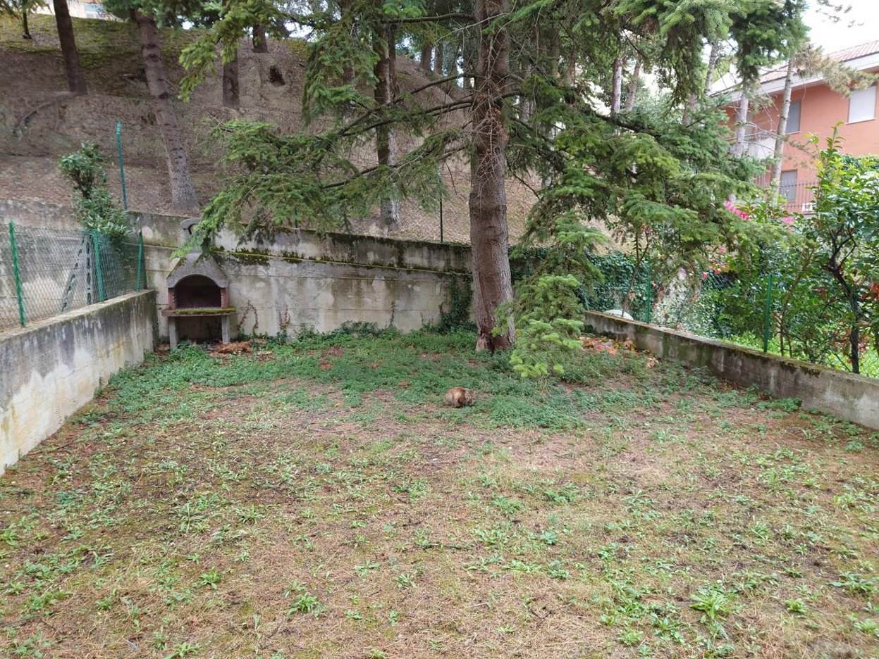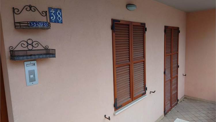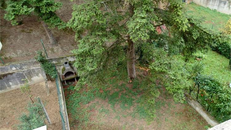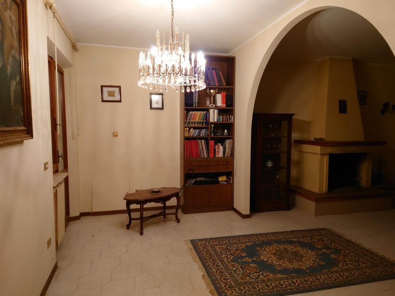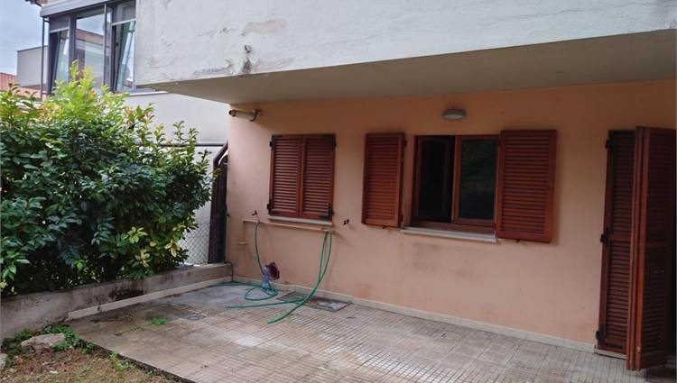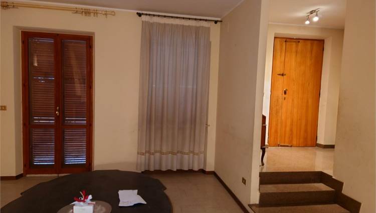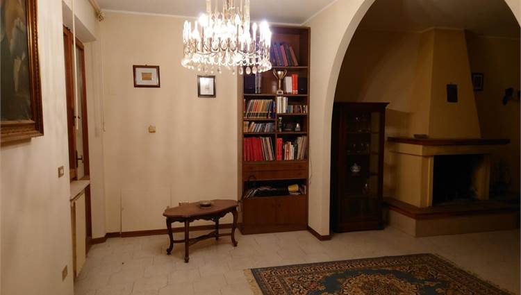 All'unità immobiliare si accede direttamente dalla via pubblica con accesso pedonale su corte esterna pavimentata e un accesso carrabile con rampa al piano seminterrato con ingresso al garage. L’appartamento si apre con un ampio disimpegno dal quale si accede alla zona soggiorno e al piano primo tramite scala interna nel quale sono distribuite due camere, uno studio, un bagno e un ripostiglio. Dal ripostiglio tramite una botola si accede alla soffitta non abitabile. Dalle camere, attraverso le porte finestre che si affacciano su entrambi i prospetti frontale e posteriore, é possibile accedere ai rispettivi balconi. Anche al piano rialzato tramite le aperture su soggiorno si accede direttamente a un ulteriore balcone sul lato posteriore e al ballatoio di ingresso. Dal soggiorno, tramite scala interna si accede al garage piano seminterrato, dotato di bagno di servizio e un ripostiglio. Sempre al piano seminterrato insiste un vano ad uso accessorio dotato di camino in muratura e aperture con accesso alla corte esclusiva posteriore, quest’ultima in parte pavimentata e in parte costituita da giardino. Dal garage tramite ulteriore scala interna si accede al piano interrato ad uso ripostiglio. Gli infissi sono realizzati in legno con doppio vetro con persiane anch'esse in legno. L'abitazione presenta pavimenti e rivestimenti in gres porcellanato nella zona giorno mentre le camere e il disimpegno del piano primo sono caratterizzate da pavimentazione in parquet.