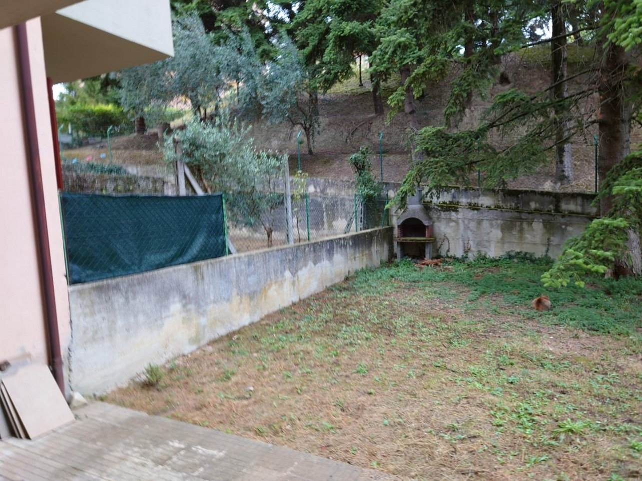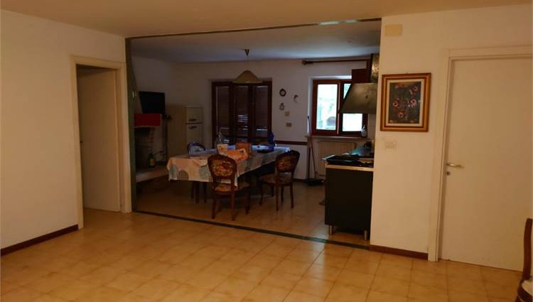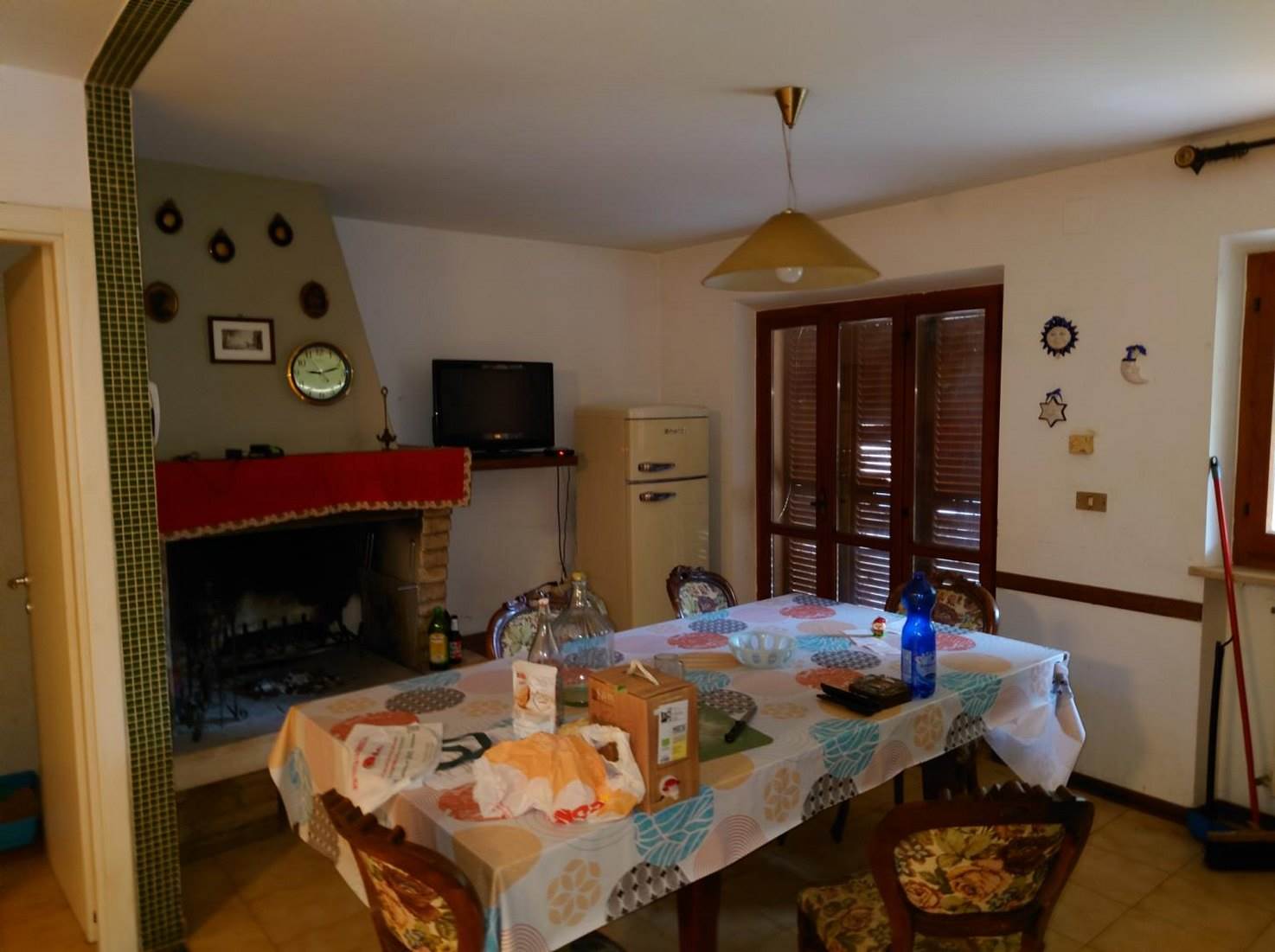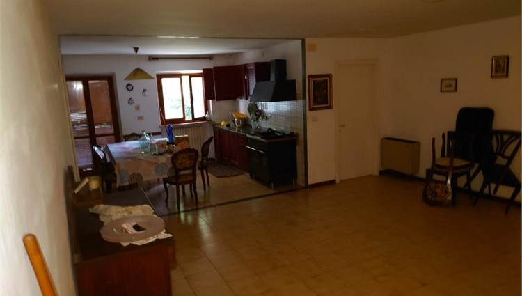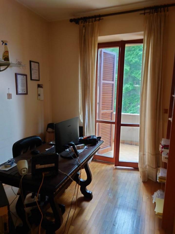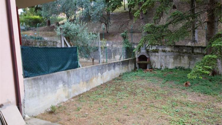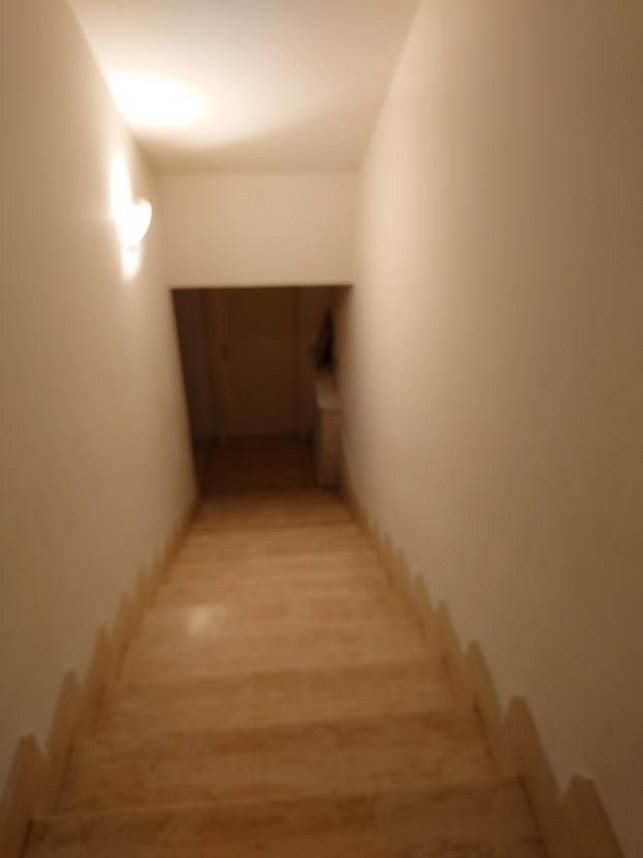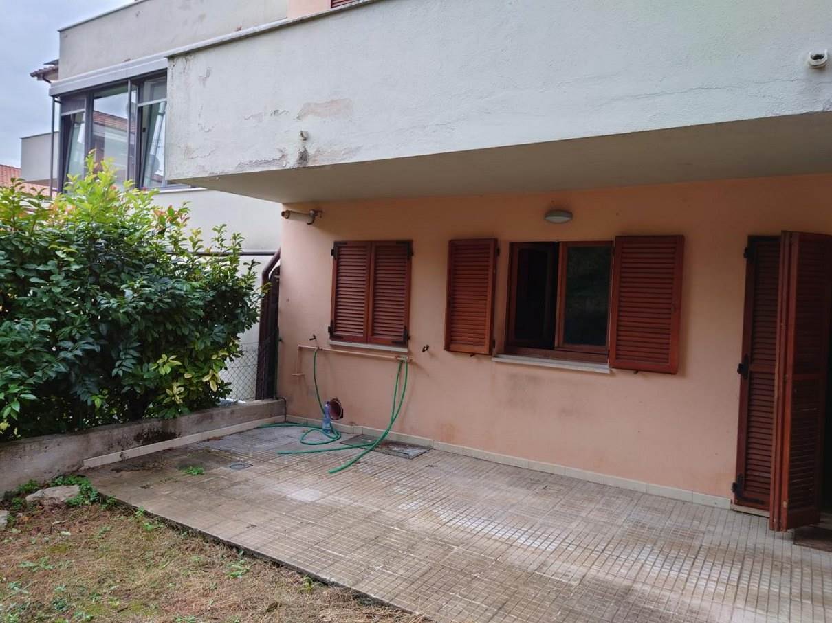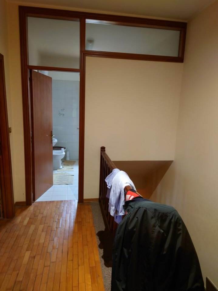 All'unità immobiliare si accede direttamente dalla via pubblica con accesso pedonale su corte esterna pavimentata e un accesso carrabile con rampa al piano seminterrato con ingresso al garage. L’appartamento si apre con un ampio disimpegno dal quale si accede alla zona soggiorno e al piano primo tramite scala interna nel quale sono distribuite due camere, uno studio, un bagno e un ripostiglio. Dal ripostiglio tramite una botola si accede alla soffitta non abitabile. Dalle camere, attraverso le porte finestre che si affacciano su entrambi i prospetti frontale e posteriore, é possibile accedere ai rispettivi balconi. Anche al piano rialzato tramite le aperture su soggiorno si accede direttamente a un ulteriore balcone sul lato posteriore e al ballatoio di ingresso. Dal soggiorno, tramite scala interna si accede al garage piano seminterrato, dotato di bagno di servizio e un ripostiglio. Sempre al piano seminterrato insiste un vano ad uso accessorio dotato di camino in muratura e aperture con accesso alla corte esclusiva posteriore, quest’ultima in parte pavimentata e in parte costituita da giardino. Dal garage tramite ulteriore scala interna si accede al piano interrato ad uso ripostiglio. Gli infissi sono realizzati in legno con doppio vetro con persiane anch'esse in legno. L'abitazione presenta pavimenti e rivestimenti in gres porcellanato nella zona giorno mentre le camere e il disimpegno del piano primo sono caratterizzate da pavimentazione in parquet.