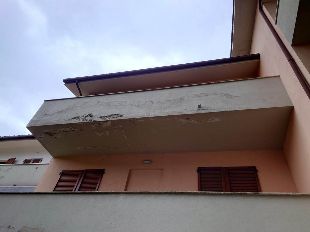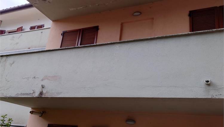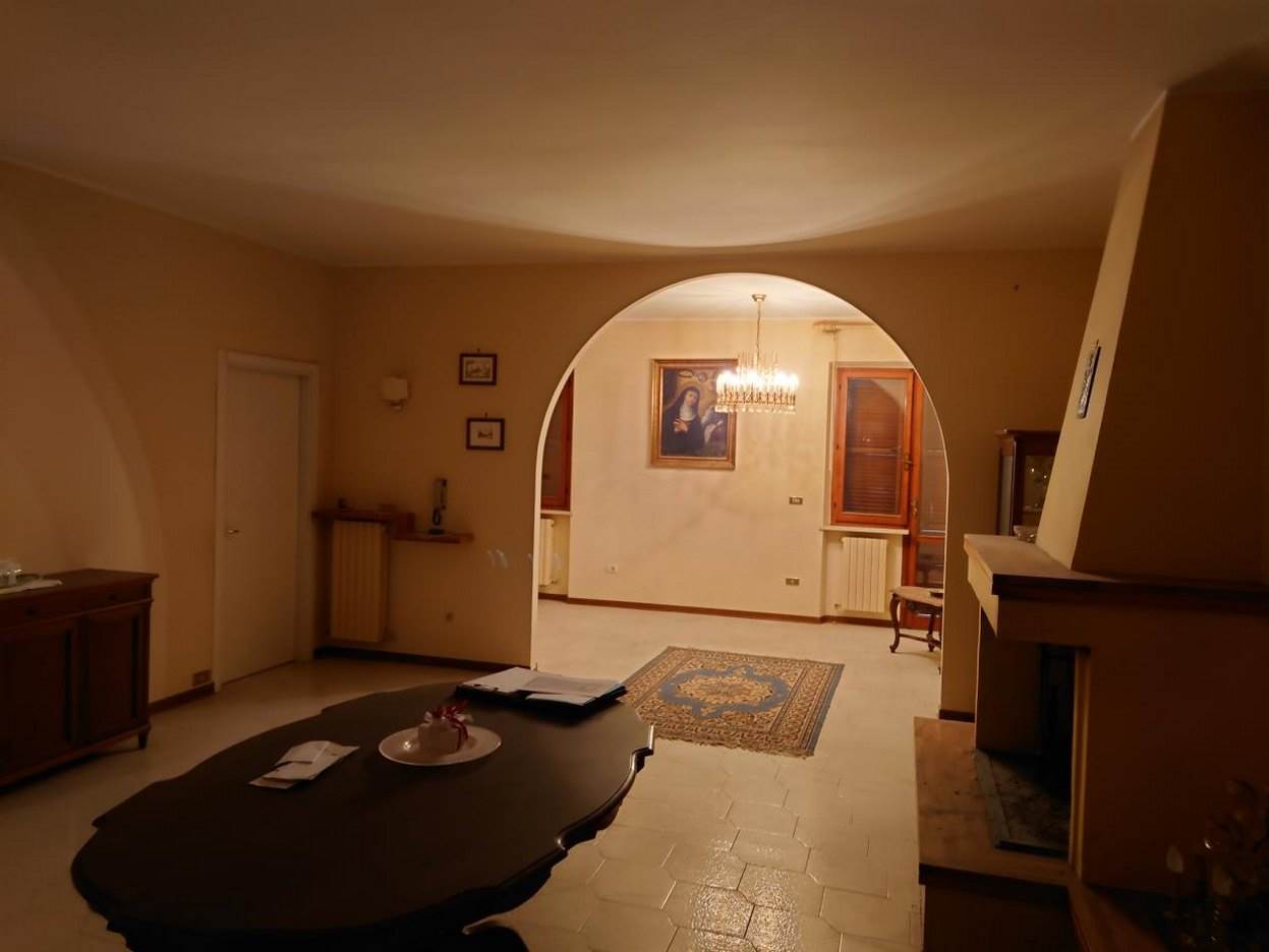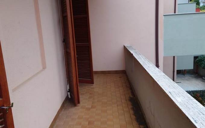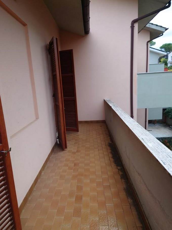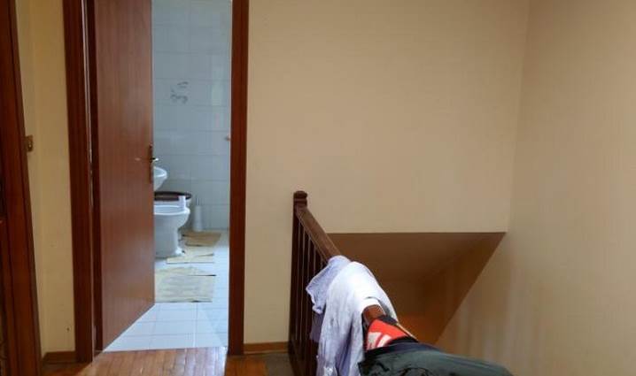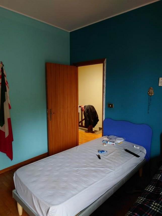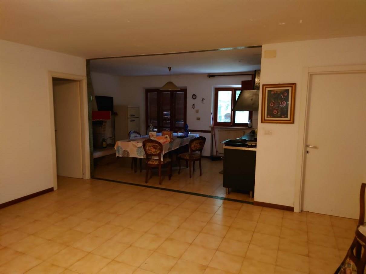 All'unità immobiliare si accede direttamente dalla via pubblica con accesso pedonale su corte esterna pavimentata e un accesso carrabile con rampa al piano seminterrato con ingresso al garage. L’appartamento si apre con un ampio disimpegno dal quale si accede alla zona soggiorno e al piano primo tramite scala interna nel quale sono distribuite due camere, uno studio, un bagno e un ripostiglio. Dal ripostiglio tramite una botola si accede alla soffitta non abitabile. Dalle camere, attraverso le porte finestre che si affacciano su entrambi i prospetti frontale e posteriore, é possibile accedere ai rispettivi balconi. Anche al piano rialzato tramite le aperture su soggiorno si accede direttamente a un ulteriore balcone sul lato posteriore e al ballatoio di ingresso. Dal soggiorno, tramite scala interna si accede al garage piano seminterrato, dotato di bagno di servizio e un ripostiglio. Sempre al piano seminterrato insiste un vano ad uso accessorio dotato di camino in muratura e aperture con accesso alla corte esclusiva posteriore, quest’ultima in parte pavimentata e in parte costituita da giardino. Dal garage tramite ulteriore scala interna si accede al piano interrato ad uso ripostiglio. Gli infissi sono realizzati in legno con doppio vetro con persiane anch'esse in legno. L'abitazione presenta pavimenti e rivestimenti in gres porcellanato nella zona giorno mentre le camere e il disimpegno del piano primo sono caratterizzate da pavimentazione in parquet.