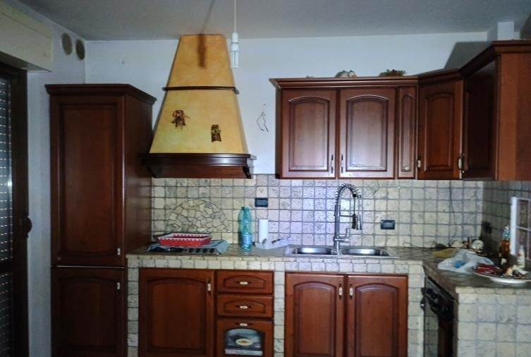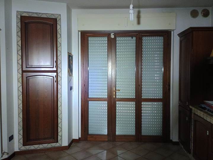 Le finiture interne sono di livello medio: pavimenti e rivestimenti in monocottura, infissi in legno con vetrocamera, serrande avvolgibili in PVC e zanzariere. La cucina in muratura risulta funzionale e in discrete condizioni. L’impianto di riscaldamento è autonomo, con caldaia a metano e termosifoni in alluminio. Gli impianti tecnologici sono presenti ma attualmente disattivati, e sono stati asportati i corpi illuminanti.