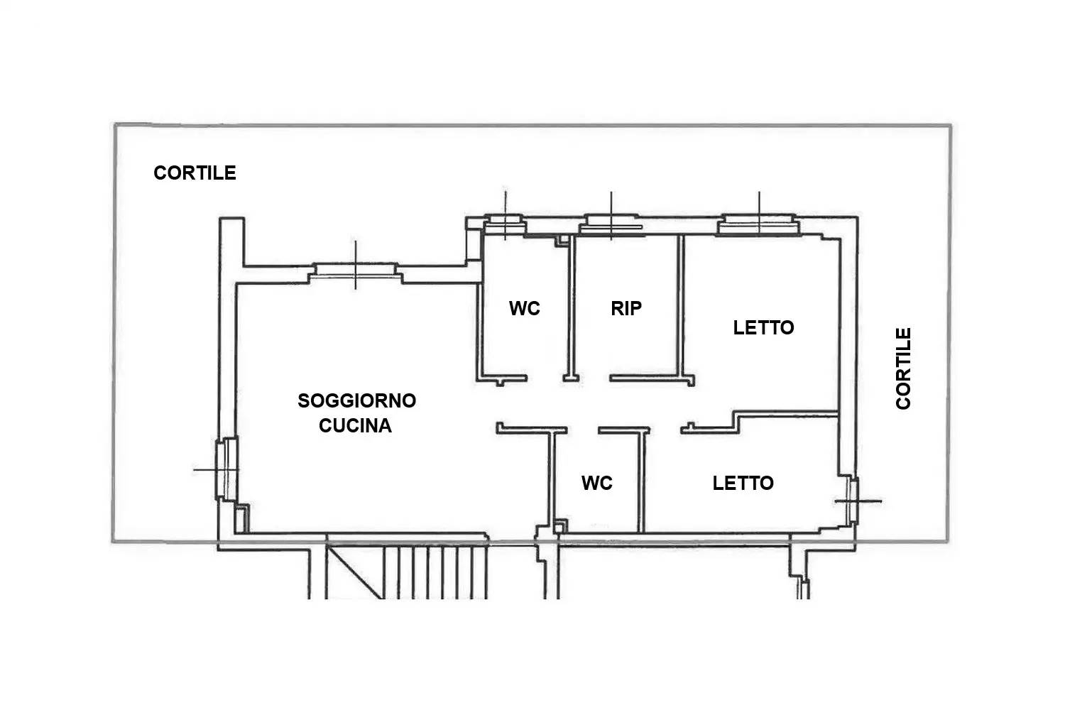 Compreso nella vendita è presente un box auto interrato di circa 48 mq dal quale si ha accesso dalla corte comune tramite una rampa con pavimento in cemento. Il garage risulta completamente rifinito con pareti e soffitti intonacati pavimento in ceramica e porta basculante in metallo.