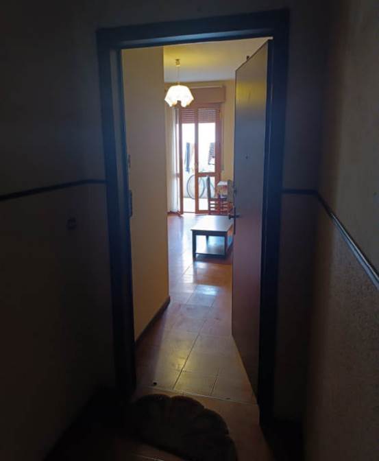 L’appartamento è composto da soggiorno con angolo cottura di mq 22,45 aperto a nord sul balcone di mq 6,00; un disimpegno distribuisce gli spazi della zona notte, un bagno di mq 4,50 senza finestra, una camera con finestra a nord di mq 13,50 e uno studio con finestra a ovest sul cavedio di mq 6,65. I pavimenti di tutti i locali sono in gres porcellanato, risalenti all'epoca di costruzione, così come le soglie in marmo e gli infissi e gli avvolgibili in pvc. Anche il rivestimento del bagno è in gres porcellanato e