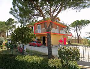 Il fabbricato è suddiviso in due subalterni che identificano una porzione abitativa e una accessoria. La struttura è in muratura portante e la porzione è stata interessata da interventi di ristrutturazione alla fine degli anni ’90. L’abitazione risulta accessibile dal piano primo tramite scala metallica che conduce a un ampio terrazzo; sono inoltre presenti spazi pertinenziali esterni adibiti in parte a giardino e in parte a corte di accesso e manovra. Le finiture interne dell’abitazione sono descritte come di buona fattura, con pavimentazioni in ceramica, infissi in alluminio e persiane in alluminio. I locali posti al piano terra e al piano seminterrato risultano invece al grezzo.