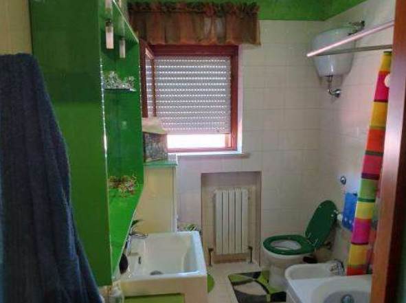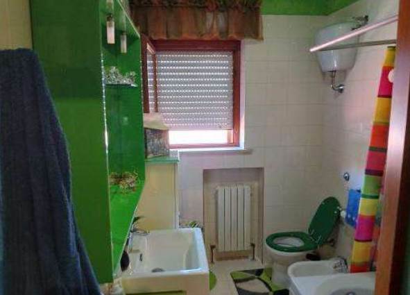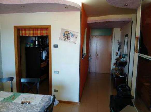 L'appartamento sito al piano primo ha una consistenza complessiva part a circa 110mq al Iordo. Internamente si distinguono un ingresso - disimpegno, un soggiorno, una cucina, tre camere da letto, due bagni (di cui uno NON dotato di aperture finestrata), oltre a n.2 terrazzi di complessivi 13.5 mq, il terrazzo più piccolo, con accesso dalla cucina, é tamponato con un infisso ed é utilizzato come ripostiglio.