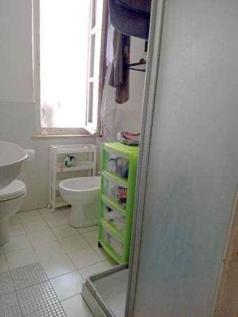 Le finiture interne risultano complessivamente modeste. I pavimenti sono realizzati prevalentemente in parquet laminato effetto legno, ad eccezione del bagno dove è presente pavimentazione in ceramica; i rivestimenti in piastrelle ceramiche sono limitati al bagno e all’angolo cottura. Le porte interne sono in legno verniciato, in parte con inserti vetrati, mentre il portone di ingresso è in legno massello. Gli infissi esterni sono costituiti da finestre in legno verniciato, in parte dotate di zanzariere, e versano in pessimo stato di conservazione.