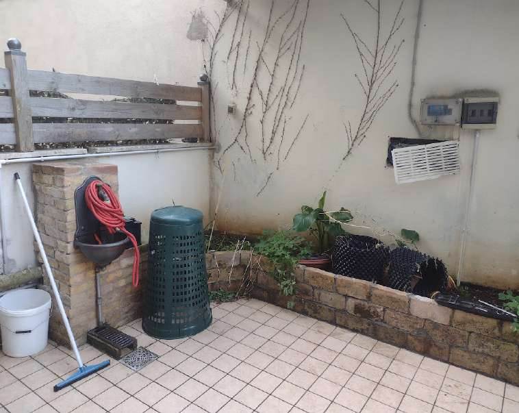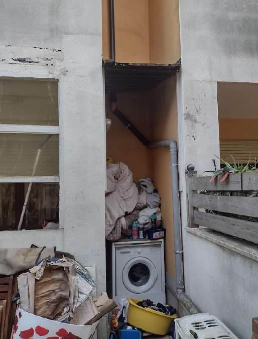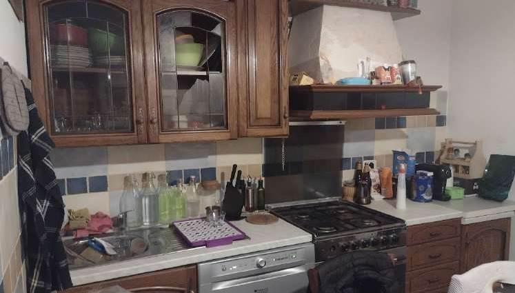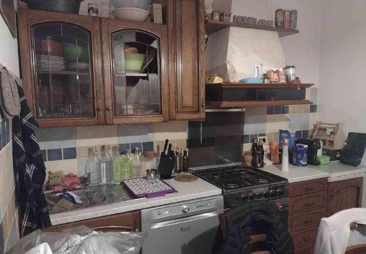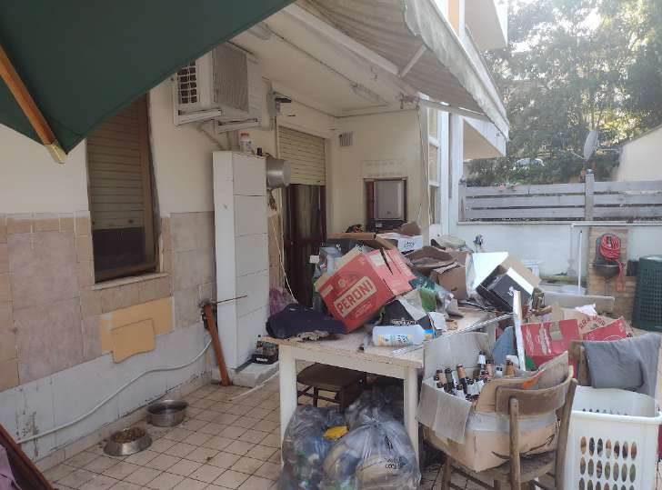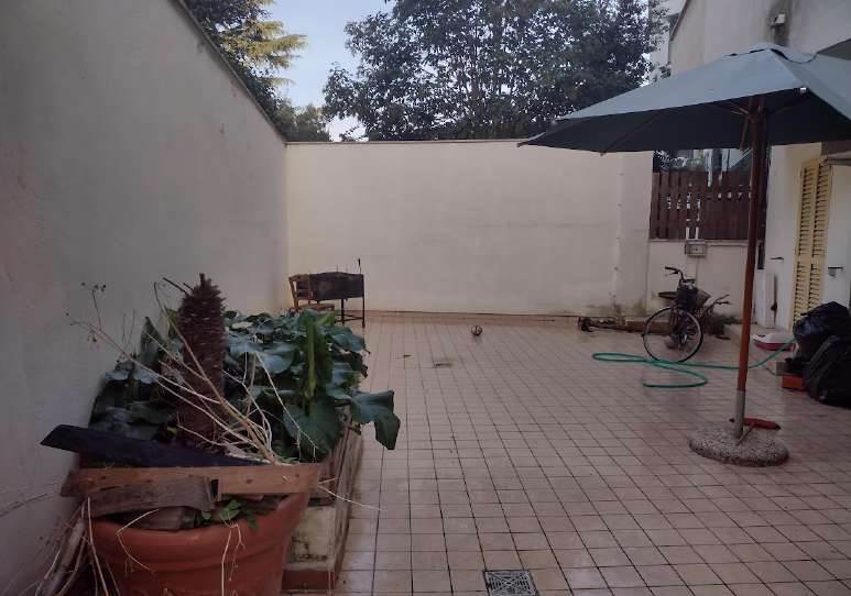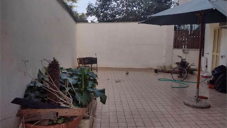 La corte esterna, di pertinenza esclusiva dell’appartamento, è suddivisa tra una zona pavimentata e una parte a verde piantumata, che tuttavia necessita di manutenzione ordinaria. L’unità risulta arredata e abitabile, ma presenta modesti segni di usura e richiede interventi di manutenzione agli infissi e al giardino.