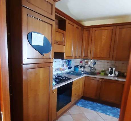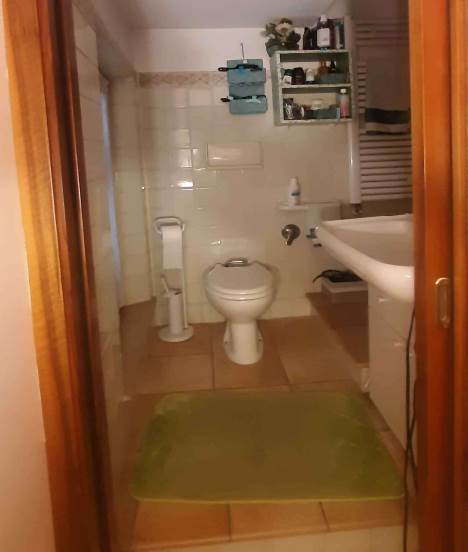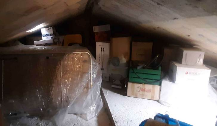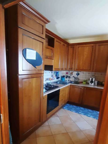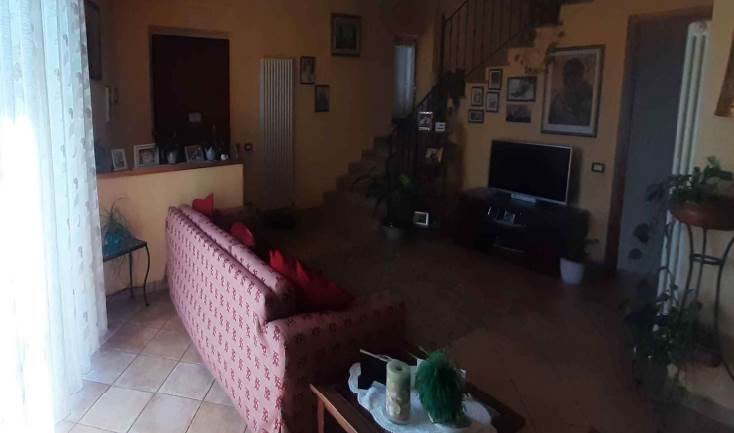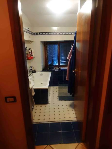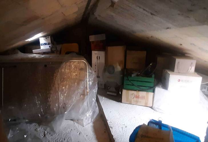 La distribuzione interna è così articolata: al piano seminterrato si trovano due locali, uno dei quali adibito a cantina e l’altro utilizzato come locale di servizio, con piccoli vani accessori e accesso diretto alla corte esterna. Al piano terra, accessibile da ingresso autonomo su fronte strada, si sviluppa la zona giorno composta da soggiorno, cucina abitabile, disimpegno, una camera da letto e un bagno, oltre a un balcone sul prospetto principale. Il primo piano ospita la zona notte con corridoio, tre camere da letto, un bagno e una cabina armadio con collegamento diretto al piano sottotetto. Lungo tale scala è stato realizzato un wc rappresentato in planimetria. Le condizioni generali di manutenzione si possono definire discrete con segni di normale usura dovuti all'utilizzo.