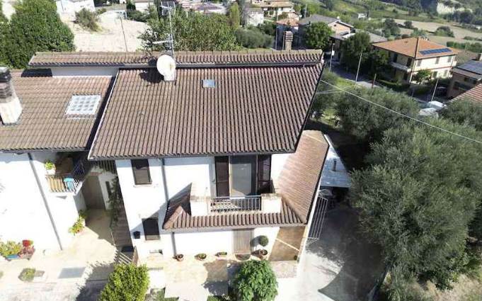 All’esterno l’abitazione è servita da una piccola corte di pertinenza, parzialmente pavimentata e recintata, sulla quale è presente una struttura leggera ad uso rimessa o ripostiglio con forno, realizzata senza titolo edilizio.