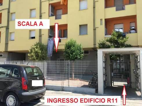 L’appartamento ha una superficie di circa 70 mq lordi e 60 mq utili ed è composto da soggiorno con cucina e zona pranzo, due camere da letto, un bagno privo di finestra ma dotato di aspirazione forzata e un disimpegno. Tutti gli ambienti principali, ovvero soggiorno e camere, sono finestrati e garantiscono una buona illuminazione e ventilazione naturali. A servizio del soggiorno è presente un balcone di circa 5 mq.