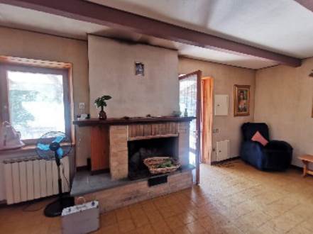 L'abitazione si sviluppa interamente al piano terra per una superficie lorda di circa 80 mq, con un portico di 30 mq sul lato ovest e la già citata corte di pertinenza di circa 180 mq. L’unità è composta da soggiorno, cucina, disimpegno, due camere, bagno, fondaco e ripostiglio. L’ingresso avviene dal portico sul lato ovest, che conduce direttamente al soggiorno con camino a legna e canna fumaria fino a tetto. I pavimenti sono in ceramica e le pareti alternate tra intonaco tinteggiato, carta da parati e perlinato in legno. Tutti gli infissi sono in legno con vetro doppio ma senza camera d’aria, dotati di sportelli esterni in legno. L’impianto idrico è autonomo, con contatore esterno; quello elettrico è anch’esso autonomo, con quadro interno vicino al portone d’ingresso. Il riscaldamento è autonomo, alimentato da caldaia a GPL con bombole poste all’esterno, sotto il portico.