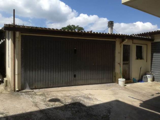 L'accessorio esterno é adibito a garage con annesso un bagno; la struttura e del tipo prefabbricato con pilastri e lastre di tamponatura in cemento armato mentre la copertura é con travi in acciaio e sovrastanti lastre in eternit. L'accesso é con serranda metallica basculante. II pavimento é costituito
