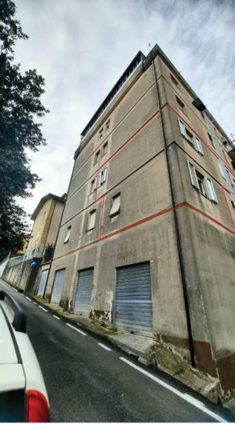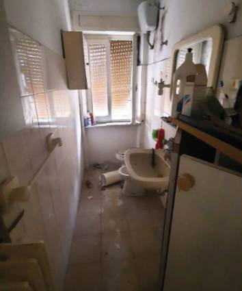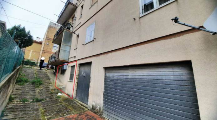 Il garage ha una superficie utile interna di circa 17 mq, con bagno annesso di ulteriori 3,40 mq, dotato di lavello e doccia privi di rubinetteria. Gli ambienti sono accessibili esclusivamente dalla scala condominiale. La pavimentazione è in piastrelle di ceramica, gli infissi esterni sono in PVC o alluminio con vetro singolo e la porta del bagno è del tipo a soffietto in PVC.