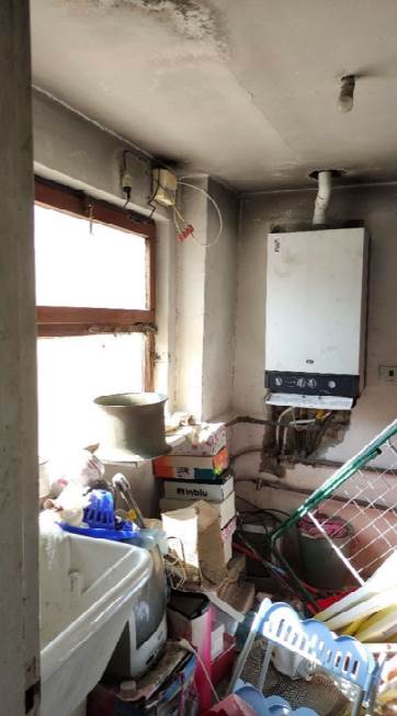 L'appartamento è l'unica unità immobiliare al secondo piano della palazzina che si sviluppa su 6 livelli con 4 piani fuori terra, un piano soffitte e un piano interrato. Con una superficie commerciale di 151 mq è composto da un soggiorno/pranzo un cucinino, 3 camere un bagno, ripostiglio e 3 balconi. L'appartamento è esposto su 3 lati. La pavimentazione è in graniglia di marmo, ricoperto con linoleum nel soggiorno e nel corridoio, pareti intonacate, porte in legno tamburato ed infissi in legno a vetro singolo con avvolgibili in pvc solo sulla facciata est. Su parte della facciata est e dei muri di una camera sono presenti macchie di umidità e muffa. L'appartamento è dotato di un impianto di riscaldamento e acqua calda con caldaia a gas posta nella soffitta al quarto piano. Quest'ultima è in comune con gli appartamenti al primo e al terzo piano. Dalla soffitta si accede ad un terrazzo con vista mare di 95 mq, comune anch'esso agli stessi appartamenti di cui sopra.