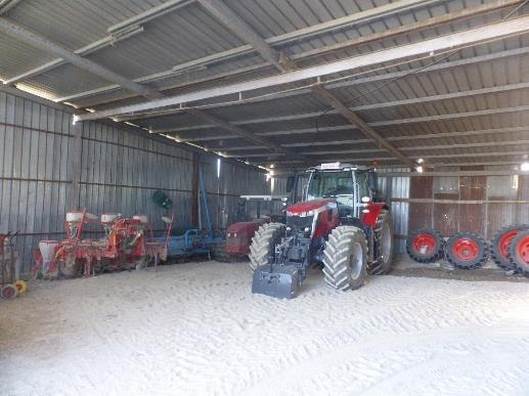 Infine, nella zona sud della corte esterna è ubicato un ampio capannone, realizzato con struttura portante mista: acciaio e cemento armato con coperture in pannelli sandwich e in lamiera.