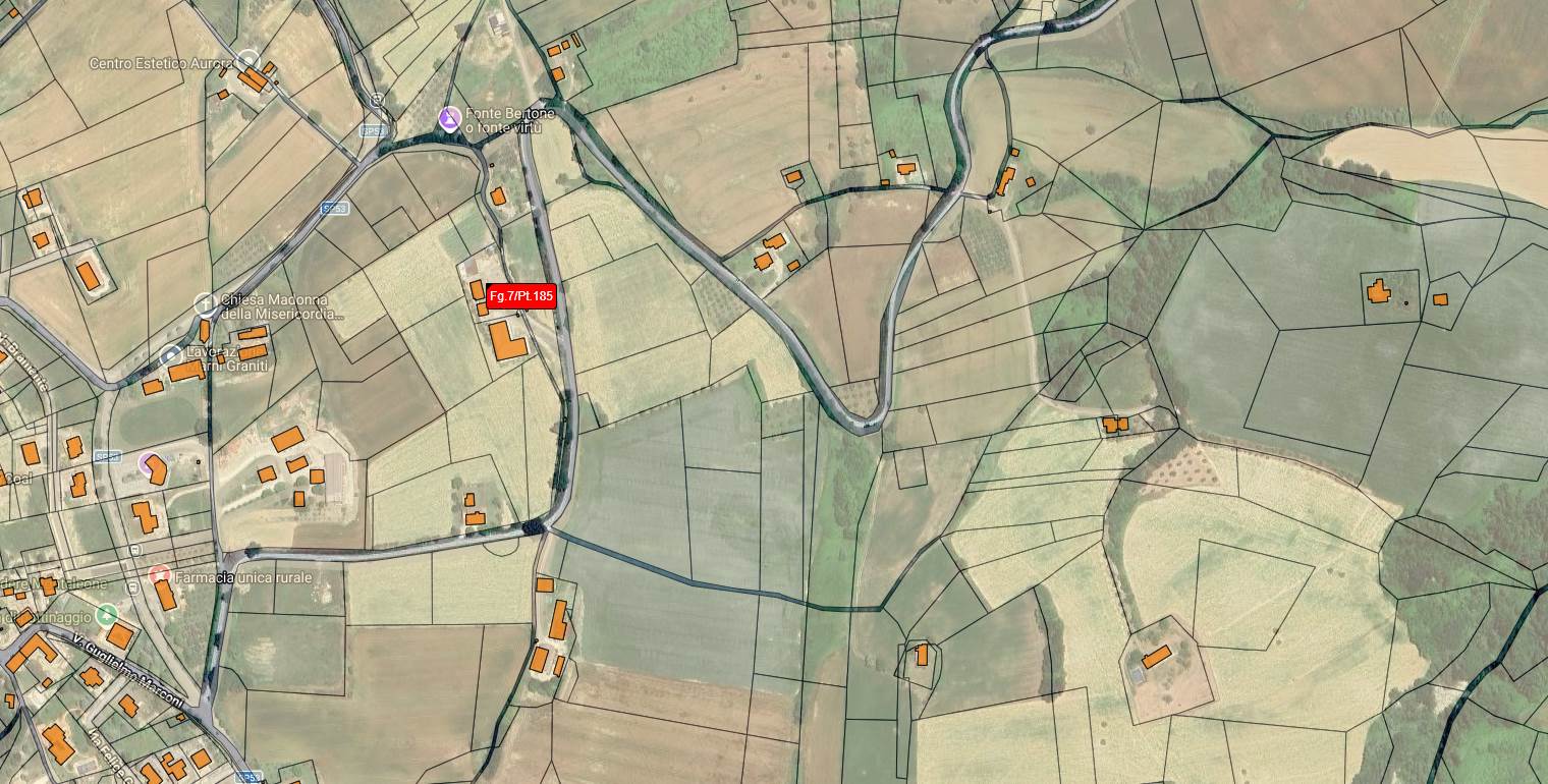 Completa la vendita in asta un terreno agricolo di 50.755 mq che circonda il complesso immobiliare; il terreno è interamente coltivato per la maggior parte a seminativo, ed in parte a vigneto, con una minima porzione di terreno occupata da bosco misto. Nel complesso l'intero terreno ha una conformazione regolare e si sviluppa in lieve declivio direzione nord-ovest.