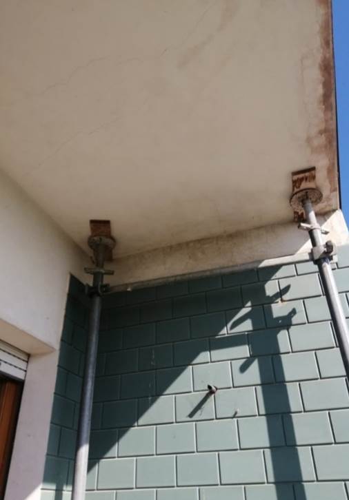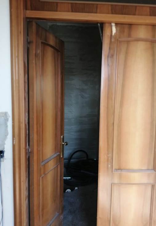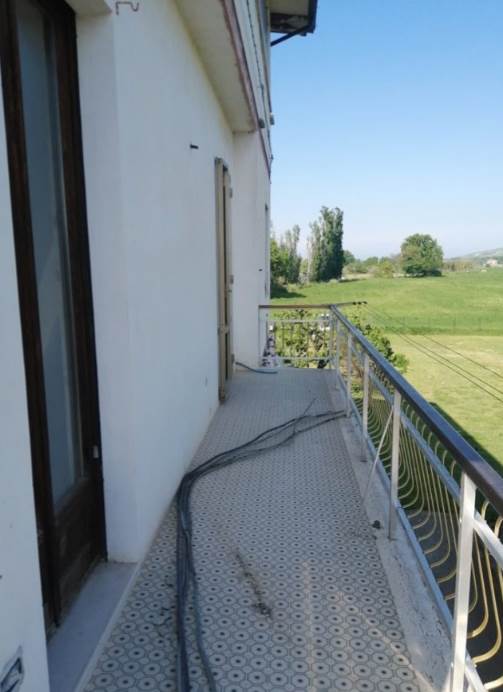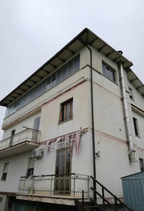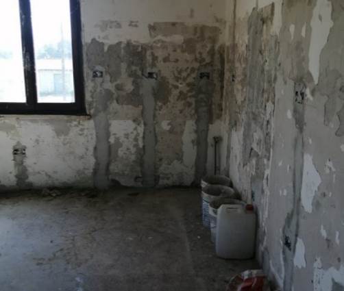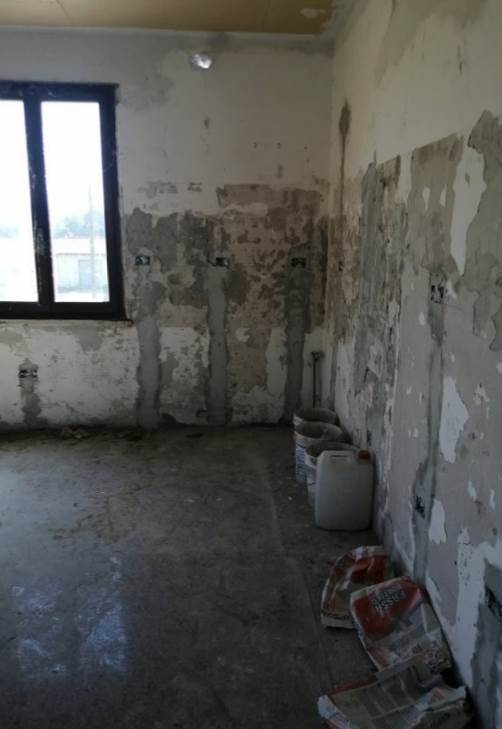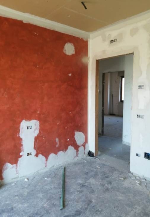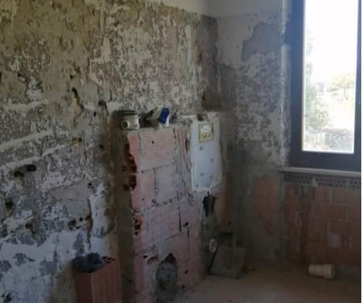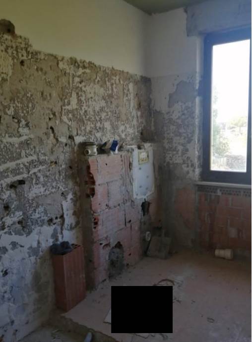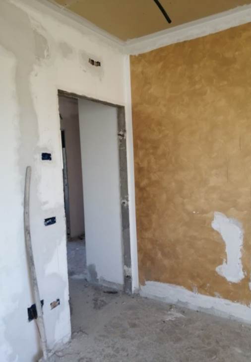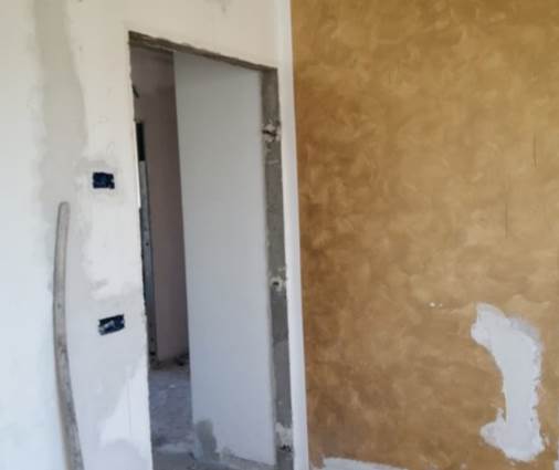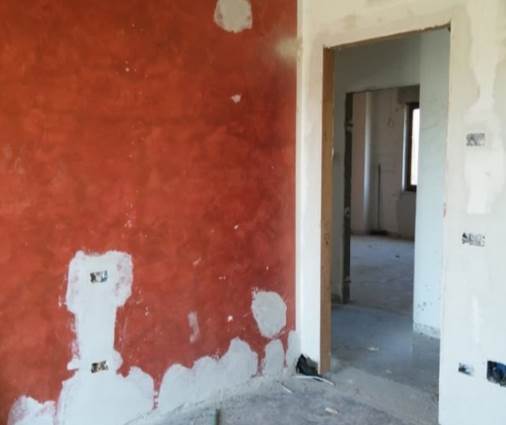 L’unità abitativa oggetto di valutazione si trova al piano primo e si presenta allo stato grezzo, in fase di completa ristrutturazione. Internamente, dopo un piccolo disimpegno, si sviluppa un ampio ambiente soggiorno-cucina, mentre la zona notte è composta da tre camere da letto e un bagno. Sono presenti due balconi, prevalentemente orientati verso i versanti nord-ovest e sud, dotati di pavimentazione piastrellata e ringhiere metalliche. In alcuni ambienti è presente una controsoffittatura, verosimilmente predisposta per l’alloggiamento degli impianti di illuminazione. Gli infissi risultano in legno e alluminio, mentre le porte interne non sono installate. L’altezza interna dei locali varia tra 2,70 m e 3,00 m.