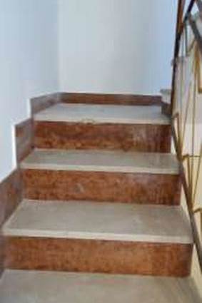 L'immobile si compone di piccolo ingresso dal quale si accede al vano scala di collegamento al piano superiore e al garage, a sinistra abbiamo un piccolo bagno; al piano primo il pianerottolo di arrivo, separa due locali: la cucina a sinistra ed il soggiorno a destra, salendo al piano secondo, il pianerottolo di arrivo vede a sinistra il bagno ed una cameretta ed a destra un'ulteriore camera. Da qui parte una scala in ferro che conduce ad una botola in vetro, da cui si accede al terrazzo in copertura, da questa si può accedere per mezzo di una piccola porta, al locale sottotetto, inabitabile, utilizzato come soffitta. La struttura dell' immobile è in muratura portante con solaio e copertura in latero cemento. La ristrutturazione recente è evidente, ma ha lasciato le finiture interne allo stato originale, con pavimenti e rivestimenti in ceramica, le scale sono in marmo, le finestre e le persiane in legno con doppio vetro e le pareti intonacate. Sono presenti gli impianti idrico, termico ed elettrico, anche se le utenze sono sospese e non risultano attivi. Non sono presenti i corpi illuminanti in alcune stanze. E' presente caldaia con termosifoni in ghisa. Le porte sono in legno tamburato, mentre la porta d'ingresso è con specchiatura in vetro e grata in metallo.