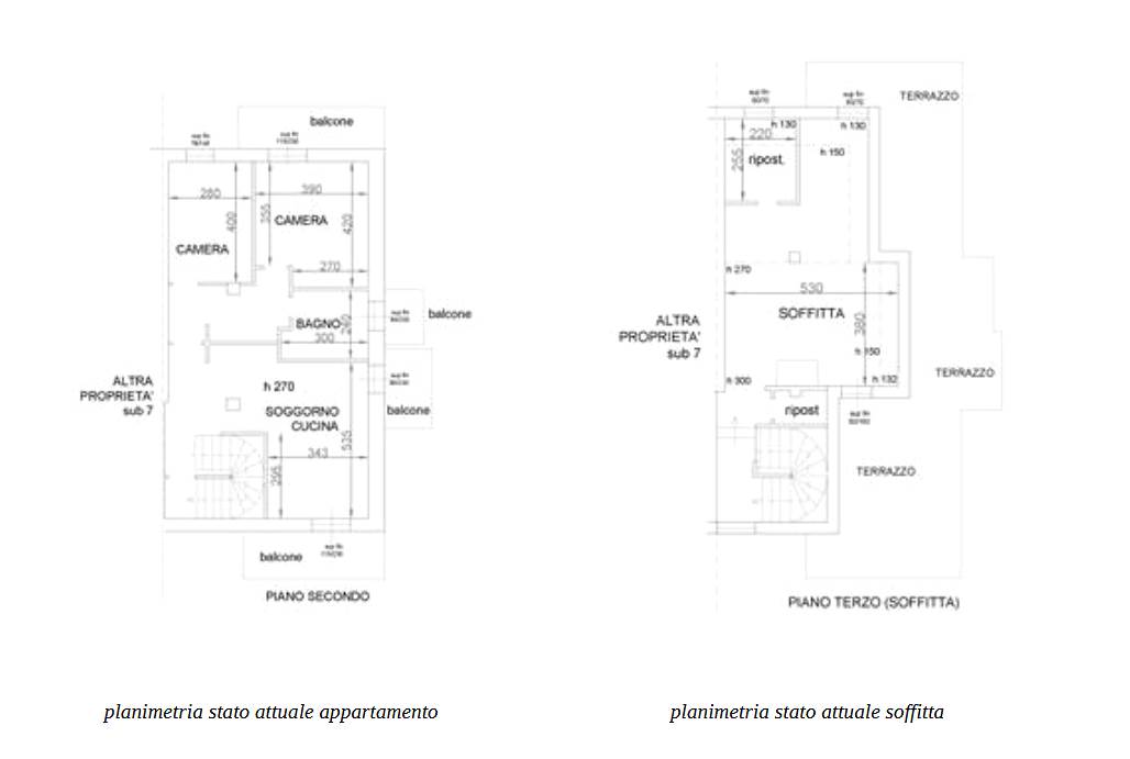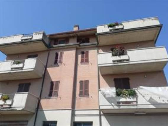 La palazzina si trova nella zona nord del comune di Porto Sant'Elpidio, zona residenziale vicina al litorale marino e vicina al camping Holiday. L’unità al piano secondo e terzo ha accesso da una scala esterna in marmo e ringhiera in ferro in comune con l’unità abitativa adiacente e speculare. Internamente troviamo un ingresso con zona giorno e cucina, due camere, un bagno e un disimpegno. Il piano terzo, collegato da una scala elicoidale in legno, è ad uso soffitta con falde di copertura di diverse pendenze, ha un ambiente utilizzato a giorno con un caminetto ed un vano servizi e dispone di un ampio terrazzo esterno con parapetto in muratura. Il manto di copertura è in coppi. L'appartamento si presenta in buono stato di uso e di conservazione completamente arredato e completo di tutti gli impianti tecnologici. Per l'impianto elettrico lo stesso risulta autonomo ma il contatore è in comune con l'unità immobiliare sottostante ovvero subalterno 9 stessa proprietà, idem per impianto di gas di riscaldamento con unica caldaia; per impianto idrico risulta anch'esso con linee autonome ma ad oggi non è presente l'utenza. Non vi è aria condizionata. I materiali e le finiture interne sono di buona fattezza e non necessitano di opere di manutenzione. Il livello soffitta anche esso è in buono stato conservativo con impiantistica. Il bene ha come accessorio una corte esterna in comune con altra proprietà di circa 400 mq e che gira intorno all'immobile in parte pavimentata e usata anche come parcheggio privato e in cui è presente l'accesso all'immobile.