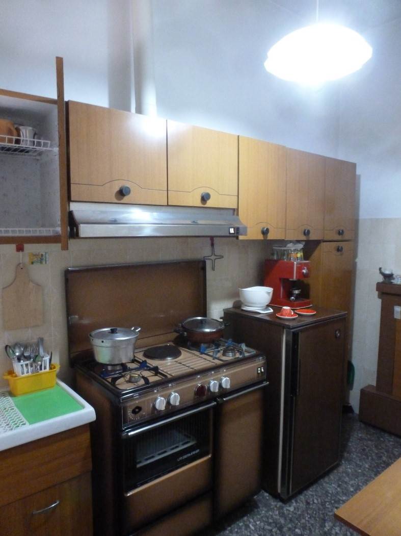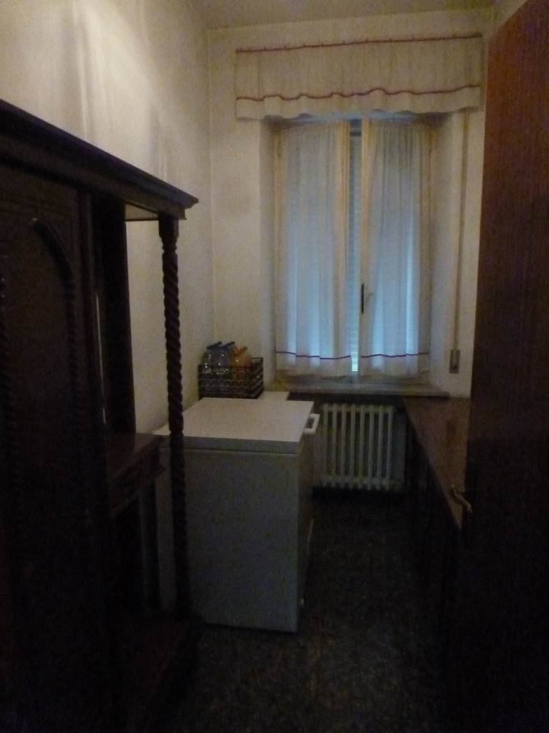 L’appartamento oggetto di valutazione è posto al terzo piano, con accesso tramite scala interna comune priva di ascensore. L’unità abitativa si compone di soggiorno, sala pranzo, piccola cucina, tre camere, un bagno, un ripostiglio e un disimpegno, per una superficie complessiva di circa 130 mq e un’altezza utile pari a 3,00 m. Sul lato ovest è presente un balcone di circa 13 mq. Le finiture interne risultano tipiche dell’epoca costruttiva: pavimenti in marmittoni di graniglia, infissi interni in legno con vetro singolo, infissi esterni dotati di tapparelle avvolgibili in plastica; sulle finestre del lato ovest sono installate ulteriori controfinestre in alluminio. L’appartamento è dotato di impianto elettrico, idrico e di riscaldamento centralizzato, con caldaia a gasolio ubicata nella centrale termica condominiale al piano terra e terminali costituiti da radiatori in ghisa. Lo stato generale dell’unità è complessivamente sufficiente.