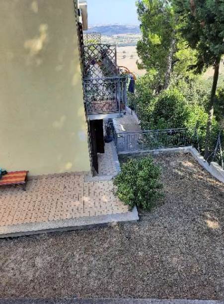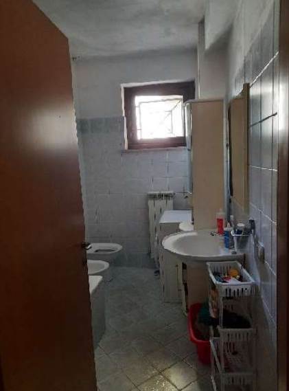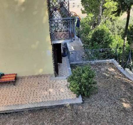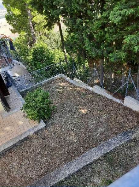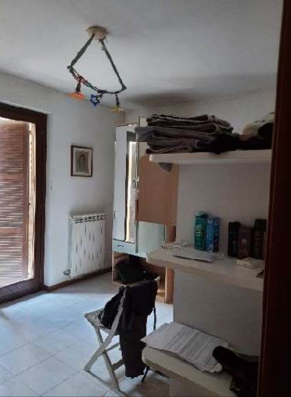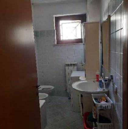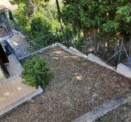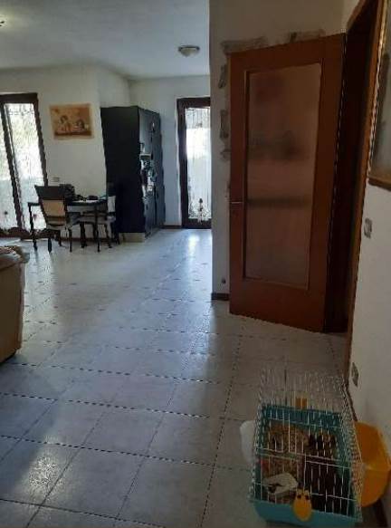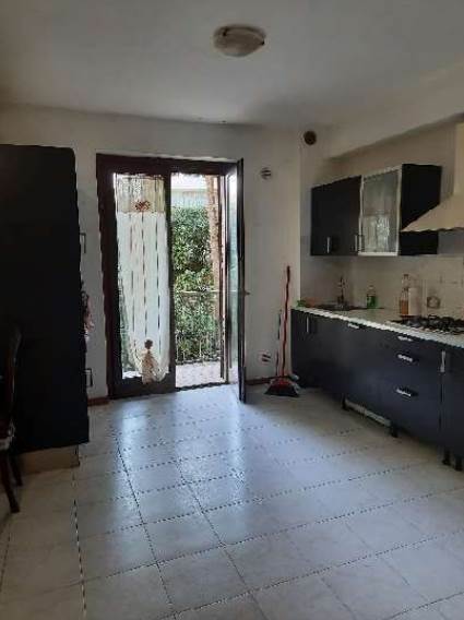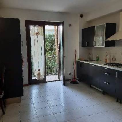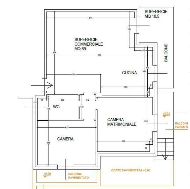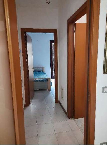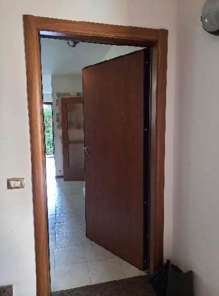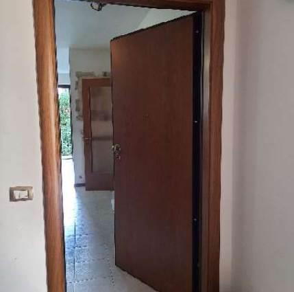 L’ appartamento al piano terra dispone di una corte esclusiva l’ingresso dello stesso si ha varcando un portone che immette nella scala condominiale. A destra dell'ingresso si trova il portoncino blindato che introduce nell’appartamento; si entra in una zona giorno spaziosa adibita a soggiorno e cucina, con due porte finestre che danno sul balcone. Dalla zona giorno si accede ad una piccola zona di disimpegno, sulla quale si aprono il bagno e due camere da letto spaziose. Dalle camere si accede alla corte esterna che è organizzata in porzioni su più livelli, individuate e divise da muretti di diversa altezza, in parte pavimentate ed in parte in terra. La superficie lorda dell’appartamento è di 89,00 mq. Dal soggiorno si accede al balcone la cui superficie è di 10,50 mq, dalle camere si accede alla corte esterna: in particolare una delle due camere, la più piccola, ha accesso ad una piccola superficie di 4,25 mq definita da un muretto contro terra, mentre dalla camera matrimoniale si accede al resto della corte, in parte pavimentata ed in parte no. La porzione più alta della corte di 14 mq non è attualmente fruibile, poiché ad una quota più alta rispetto al resto della corte. L’intera superficie della corte esterna è di 92,00 mq. I pavimenti, i rivestimenti interni ed esterni e la tinteggiatura esterna sono in buono stato di conservazione, mentre all’interno la tinteggiatura è interessata da umidità diffusa. Gli infissi delle finestre sono in legno vetro doppio con portelloni in legno per l'ombreggiamento e sono in buono stato di conservazione. Il riscaldamento è garantito con un impianto a termosifoni: la caldaia è situata fuori sul balcone della zona giorno. Nella parte antistante l’ingresso condominiale si trova un’area asfaltata delimitata da una sbarra automatica e riservata al parcheggio dei condomini.