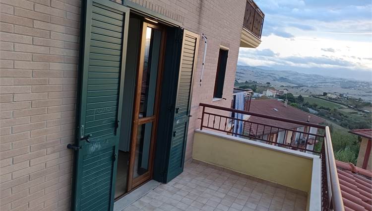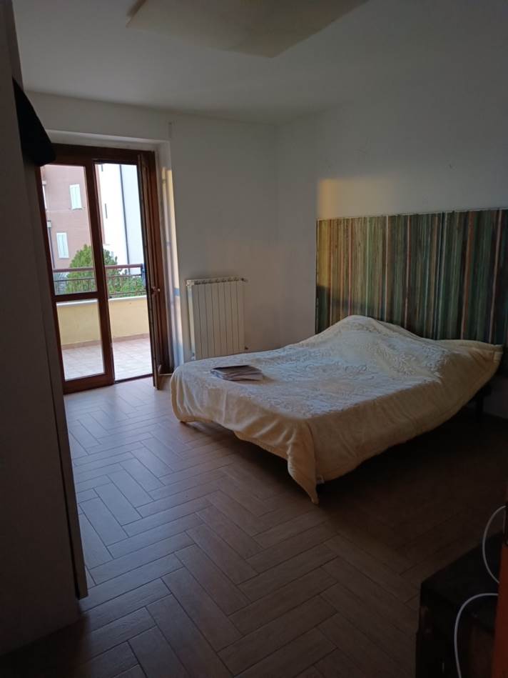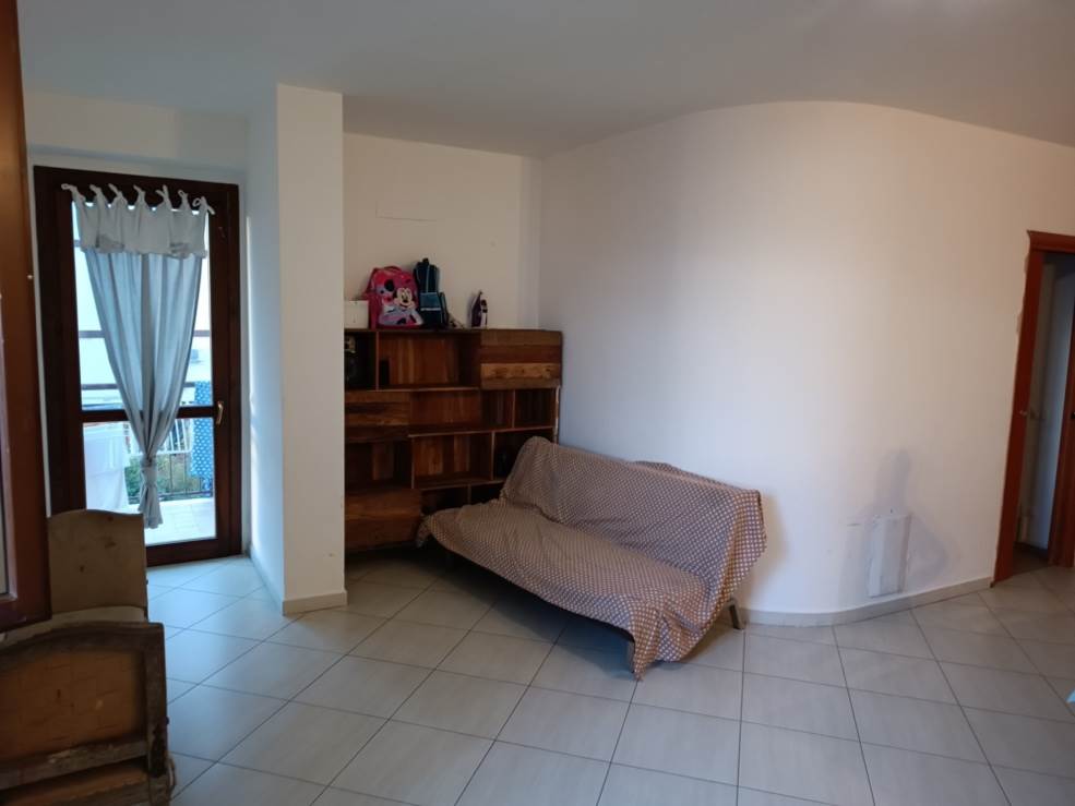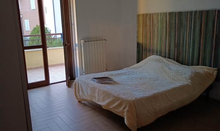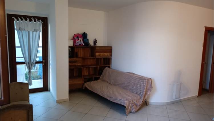 L’unità immobiliare è raggiungibile tramite scala esterna e ascensore; è composta da ingresso-soggiorno con presenza di divano e zona pranzo con cucina, disimpegno, due camere da letto, due bagni e due balconi, che garantiscono un buon apporto di luce e aerazione agli ambienti interni.