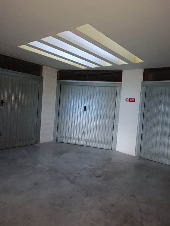Il garage di mq 30, posto al piano seminterrato, è provvisto di serranda basculante in metallo con apertura manuale.