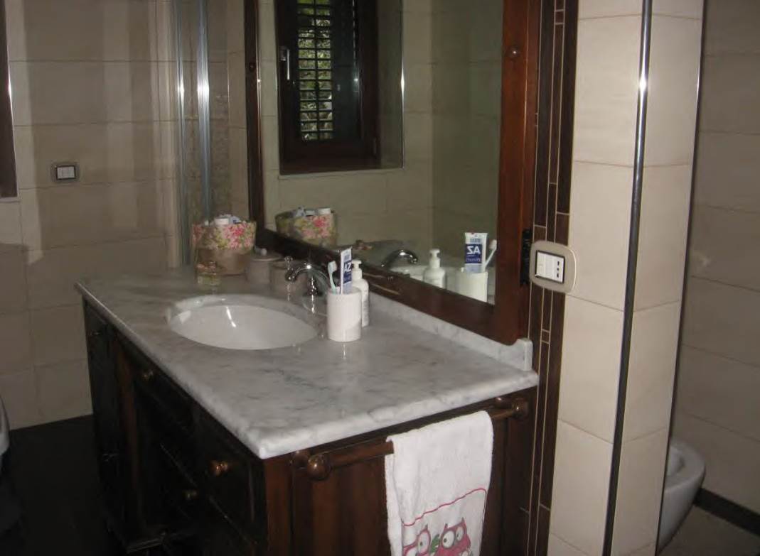 L’appartamento è intonacato al civile su pareti e soffitto, il pavimento dell’atrio, angolo cottura, camera da letto ed il bagno sono in “gres-porcellanato“. I bagni sono rivestiti con mattonelle in ceramica. Le porte interne risultano in legno tamburato. Il portoncino d’ingresso all’appartamento al piano terra risulta del tipo “ blindato". Gli infissi esterni sono in legno con vetro e persiane e griglie antintrusione in acciaio .L’impianto elettrico è del tipo sottotraccia, le lampade normali ad incandescenza risultano funzionanti al piano terra . L’impianto termico è funzionante ed è stato realizzato con una caldaia a gas GPL collocata esterno con impianto di riscaldamento a pavimento radiante a pavimento.