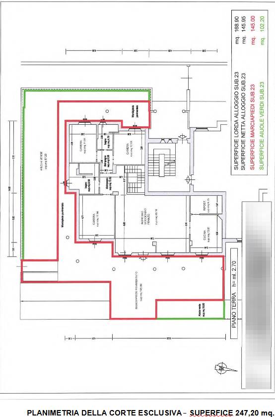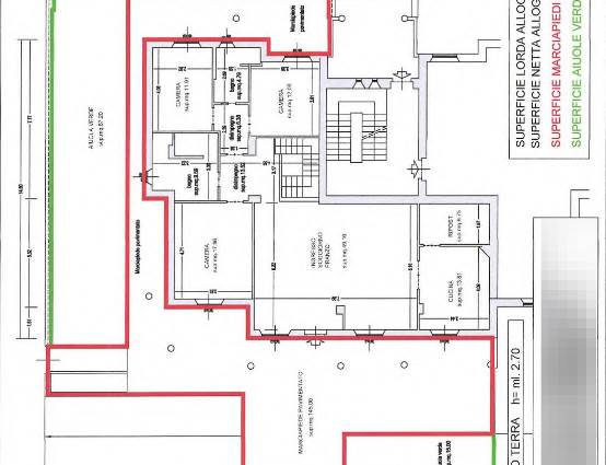 L'unità ha accesso autonomo e una superficie interna di oltre 160 mq e una corte esclusiva di circa 250 mq. La superficie della corte pavimentata risulta di 145 mq mentre la parte a verde copre la restante porzione di corte per circa105 mq. L'appartamento al piano terra si compone di : ingresso, soggiorno e pranzo, cucina, ripostiglio, n. 3 camere da letto camera, disimpegni e n. 2 bagni. Il collegamento interno dal piano terra al piano seminterrato è garantito da scala interna di proprietà. Al piano interrato sono stati realizzati ripostiglio e bagno.
