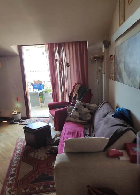 L’unità immobiliare è composta da ingresso su soggiorno con angolo cottura; un piccolo disimpegno conduce alla zona notte, costituita da una camera da letto matrimoniale, uno studio e un bagno. Dal soggiorno e dalla camera da letto è possibile accedere ai terrazzi esterni, di cui uno con esposizione a est e uno con esposizione a ovest.