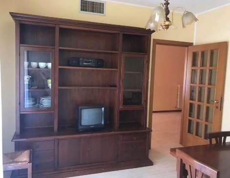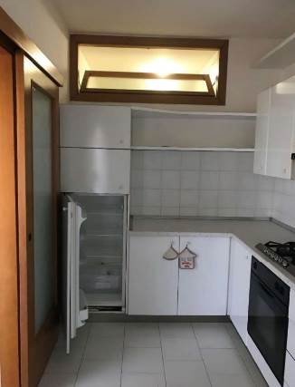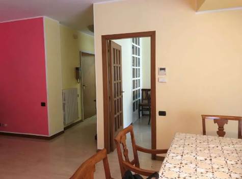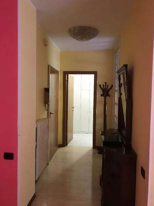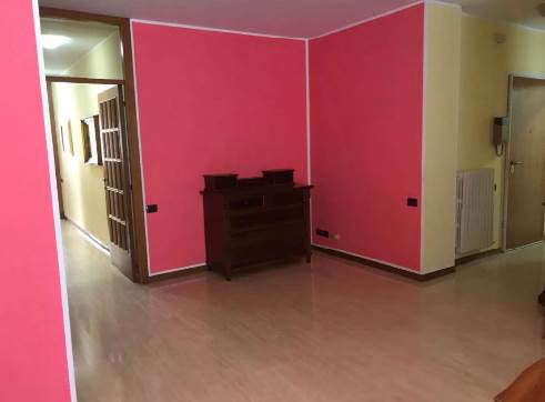 Entrando nell’appartamento, si accede a un vano d’ingresso di circa 3,70 m² calpestabili; sulla sinistra si trova un locale adibito a magazzino di circa 6 m², illuminato da una finestra affacciata sulla cucina adiacente e da luce artificiale. Proseguendo nel corridoio si accede all’ampio soggiorno, un salone, dotato di impianto di riscaldamento a radiatori e di sistema di climatizzazione a soffitto caldo/freddo. Dal soggiorno si accede alla sala da pranzo caratterizzata da una grande apertura che illumina anche la zona d’ingresso, e da qui alla cucina.