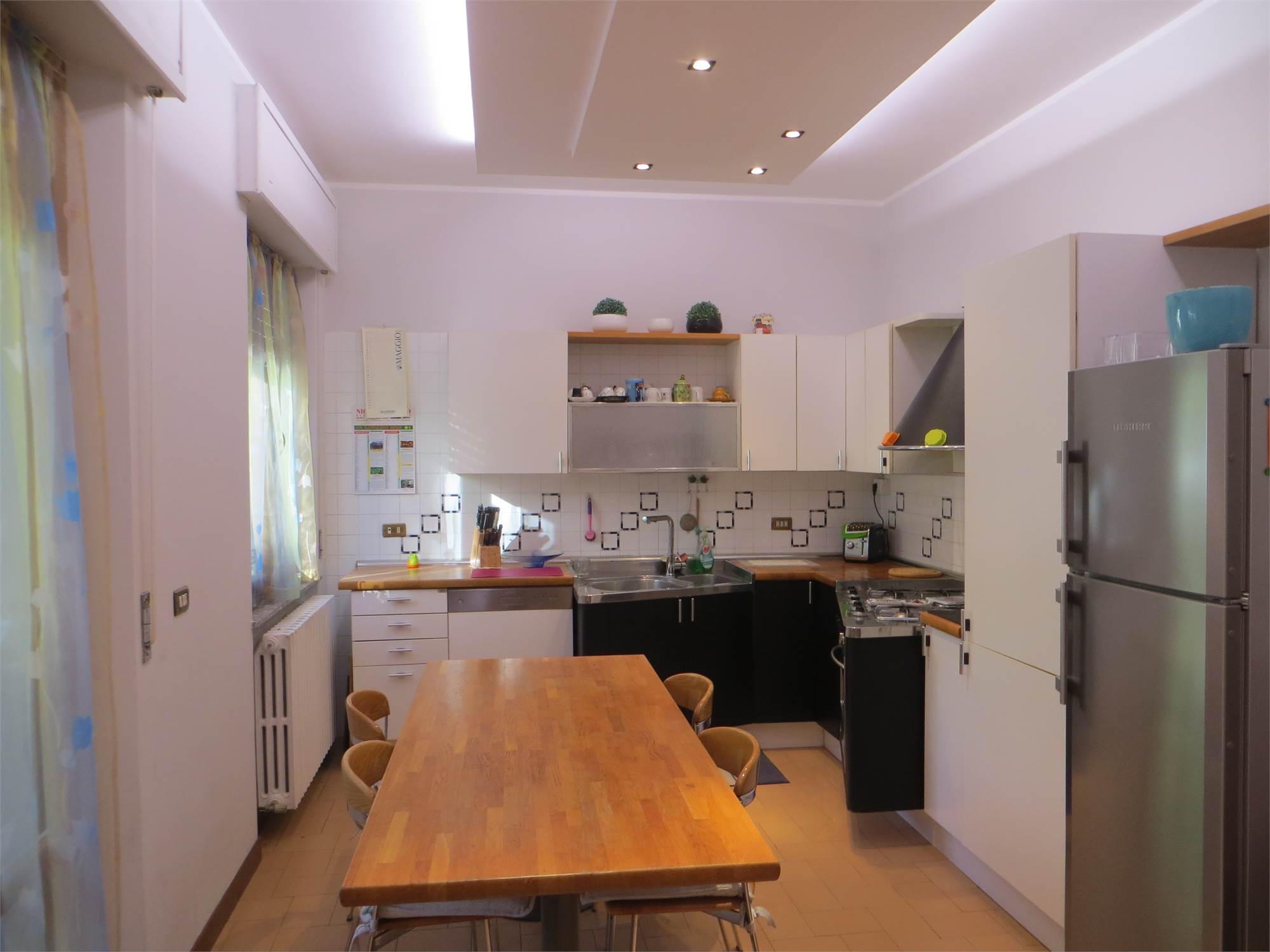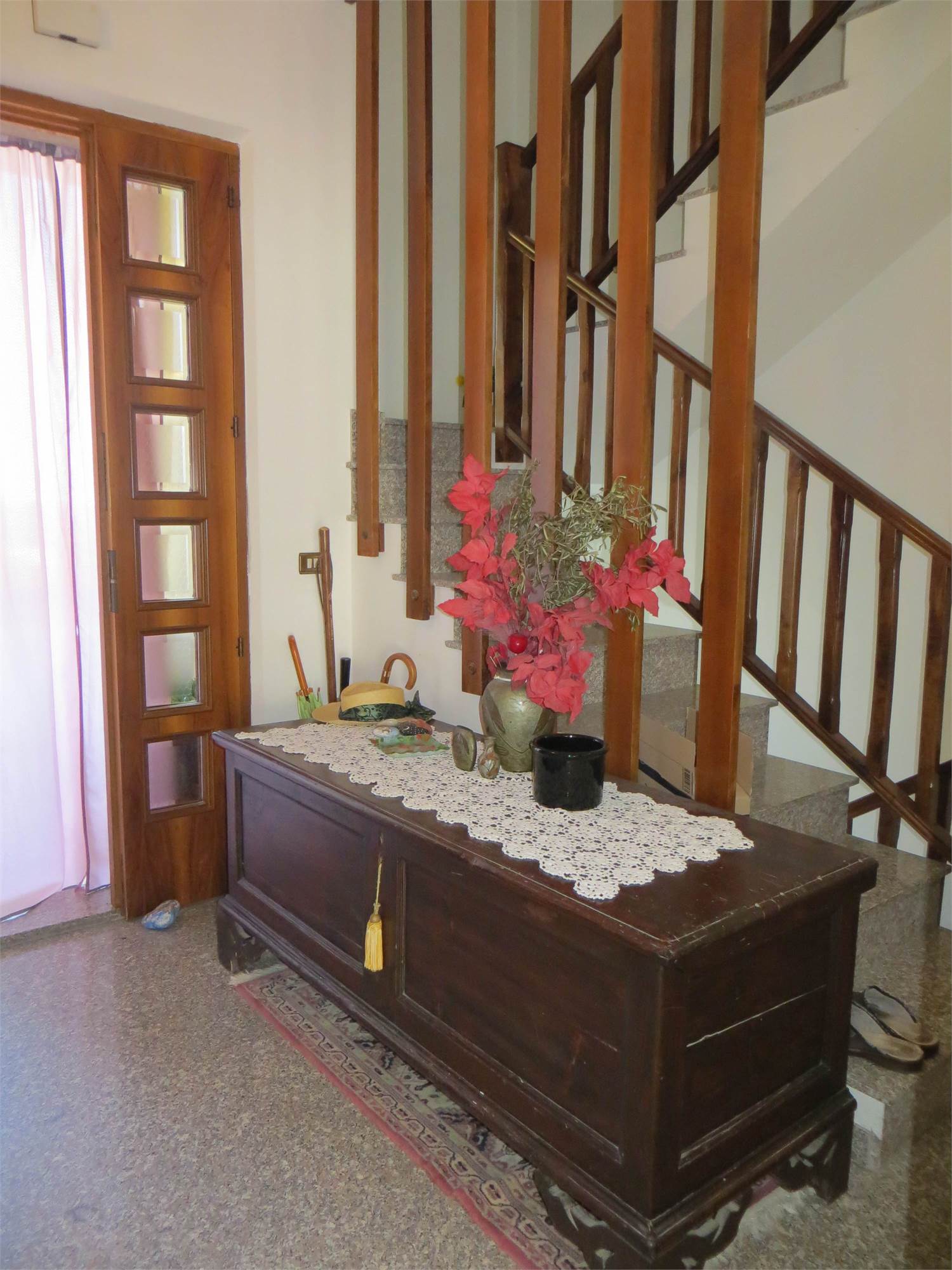 Al piano terra, un appartamento accogliente con un grande ingresso, un luminoso salone e una cucina abitabile dotata di caminetto a legna. Tre camere da letto e un servizio igienico completano questo livello. Al primo piano, un'unità abitativa separata con un ingresso elegante, un salone di rappresentanza, una cucina spaziosa e tre ampie camere da letto con doppi servizi.