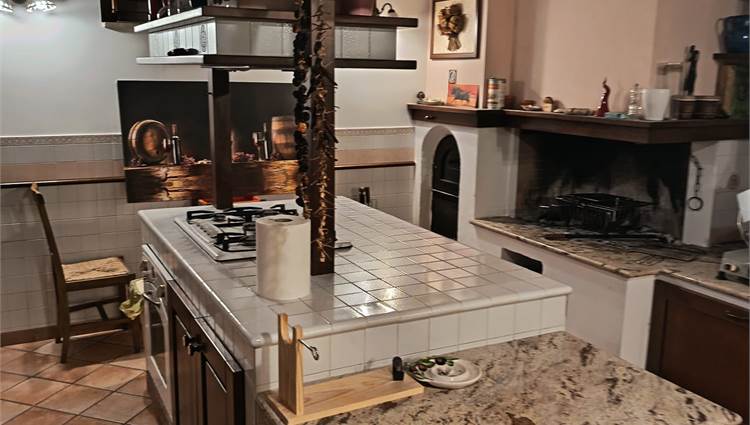 Un'elegante e tradizionale ambiente rustico, caratterizza il piano seminterrato, dotato di cucina in muratura e caminetto a legna, quest'ambiente identifica il luogo ideale per trascorrere calde serate informali, in compagnia di amici in totale relax.